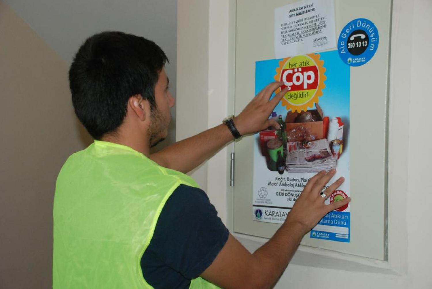 Konu ile ilgili açıklama yapan Karatay Belediye Başkanı Mehmet Hançerli; Geri Dönüşüm Projesi uygulaması hakkında bilgi vererek, geri dönüştürülen her atığın çevrenin korunmasına katkı sağlamasının yanında ülke ekonomisine de destek verdiğini vurguladı. Değerlendirilebilir atıkların ekonomiye geri kazandırılmasıyla; Plastik, cam, metal, kağıt gibi malzemelerin, depolama alanlarına gömülmek yerine ikincil ham madde olarak değerlendirilebildiğini vurgulayan Başkan Hançerli, bu çerçevede halkı bilinçlendirmek adına tanıtıcı afiş broşürlerin hazırlanarak örnek bir çöp poşeti ile site sakinlerini kapı kapı gezen Geri Dönüşüm Uygulama Ekipleri’nin halkı bilgilendirdiğini söyledi. Bu kapsamda 2014 yılı içerisinde ilk 6 ayda ilçede bulunan 4.800 konuta eğitim yapıldığını, yıl sonuna kadar hedeflenen sayının 10.000 olduğunu belirten Mehmet Hançerli; Karatay sınırları içerisinde bulunan tüm resmi kurum ve kuruluşlar, oteller ve alışveriş merkezlerinde de atık pil kutuları dağıtılarak atık pillerin suya ve toprağa karışmasının önlendiğini belirtti.