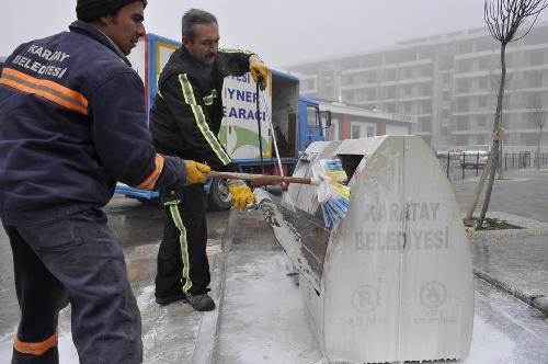 Karatay Belediyesi olarak ilk kez 2009 yılında şehir merkezinin 5 farklı noktasında başlattığı yeraltı çöp konteynır hizmeti, şimdilerde ilçenin eğitim alanları ve yeni bağlanan mahalleleri dahil 184 noktaya yerleştirilerek gelişi güzel atılan çöplerden oluşan görüntü kirliliğini ortadan kaldırıyor.