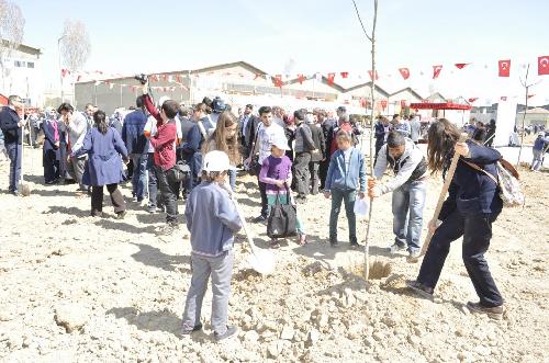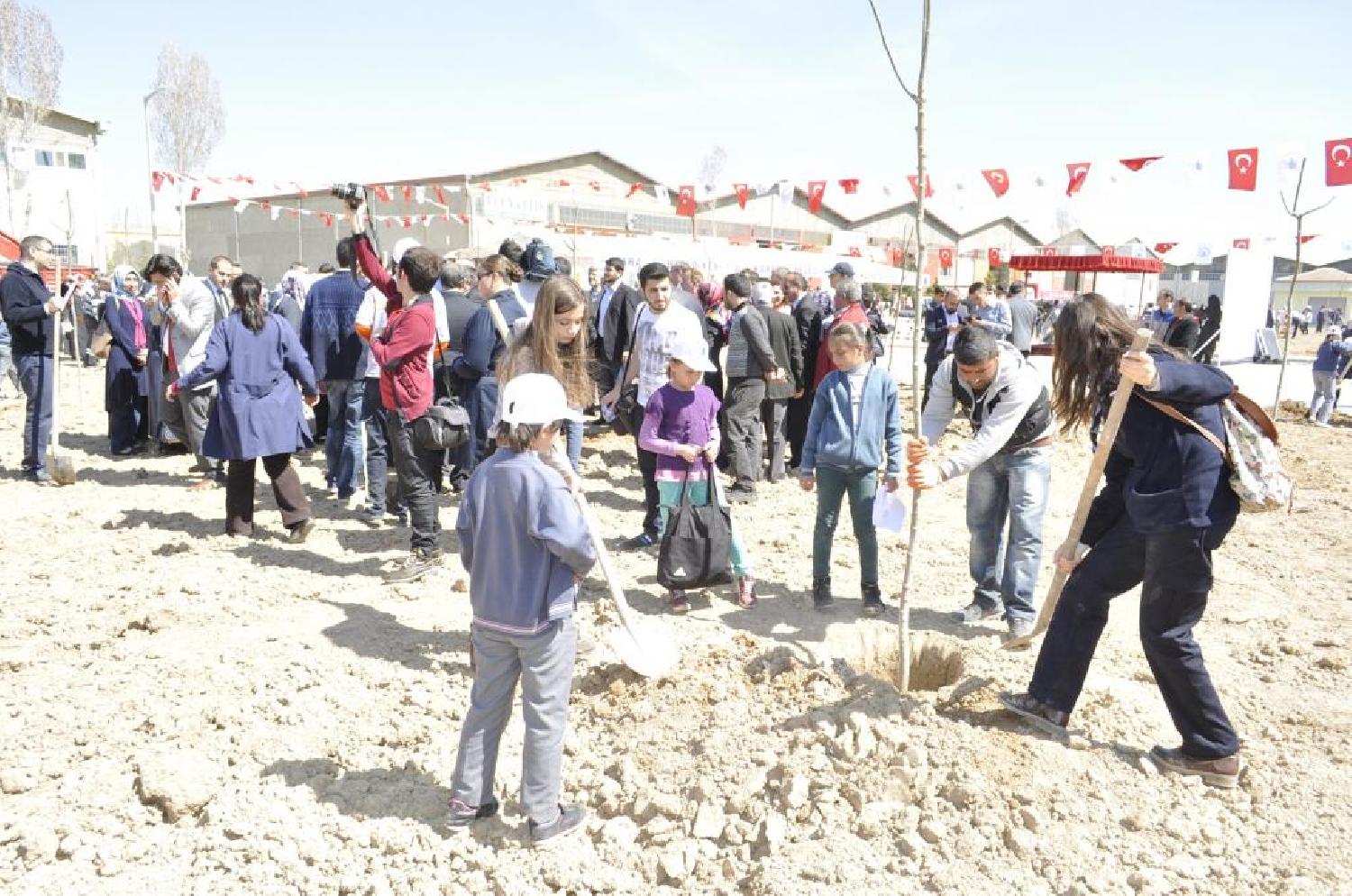 Konuşmaların ardından Törene katılan protokol ve izciler ağaçlandırma alanına geçerek 350 ağacı toprakla buluşturdu.