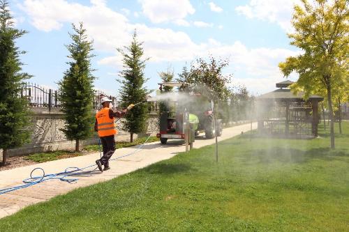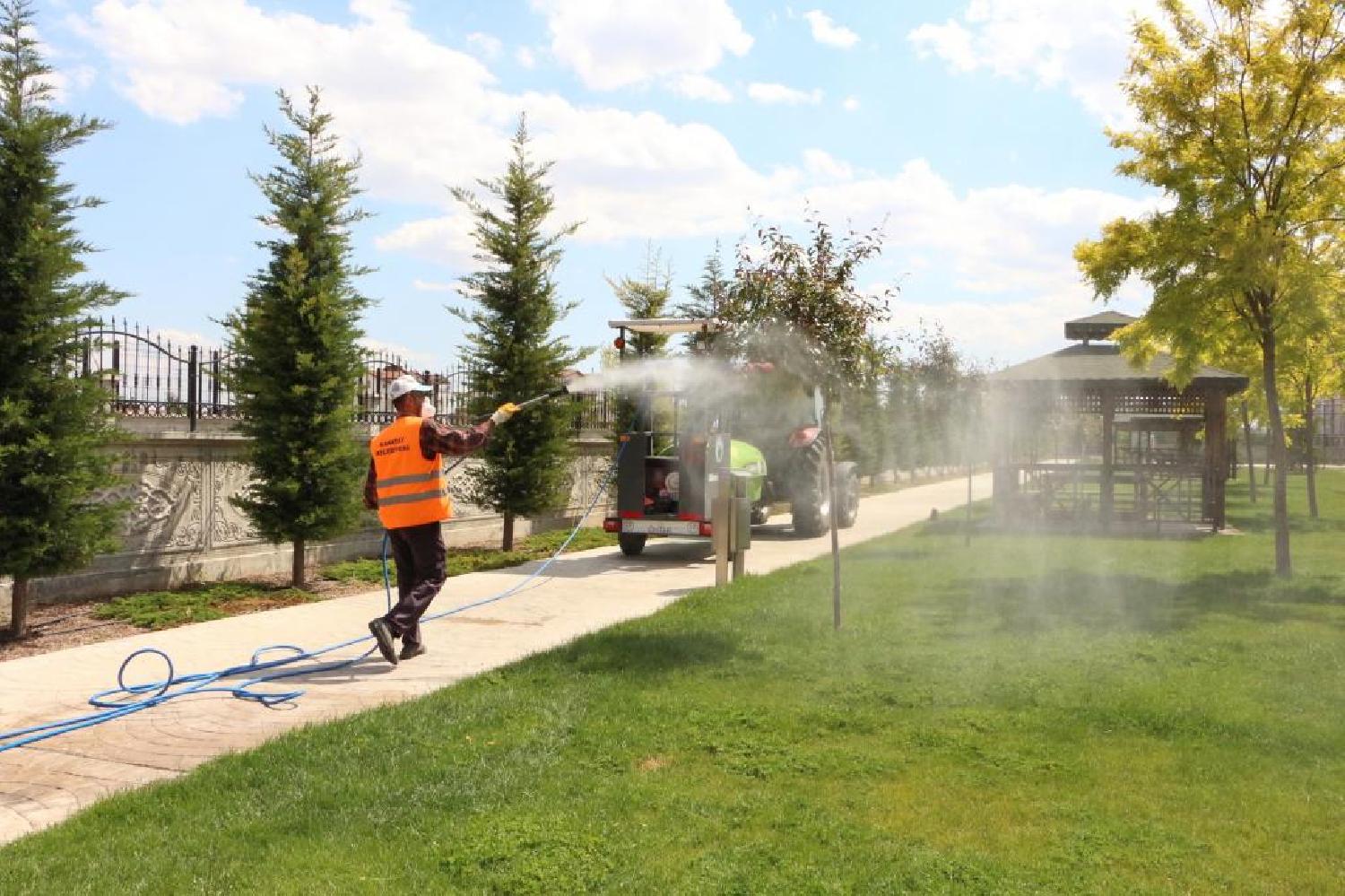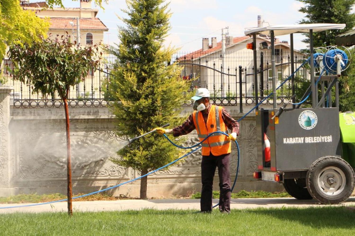 Karatay Belediyesi Park Bahçeler Müdürlüğü, ilçeye kazandırılan yeşil alan ve parklarda yaprak biti, ağaç gövdesi kurdu, yaprak sineği ve yabancı otlara karşı ilaçlama çalışması başlattı.