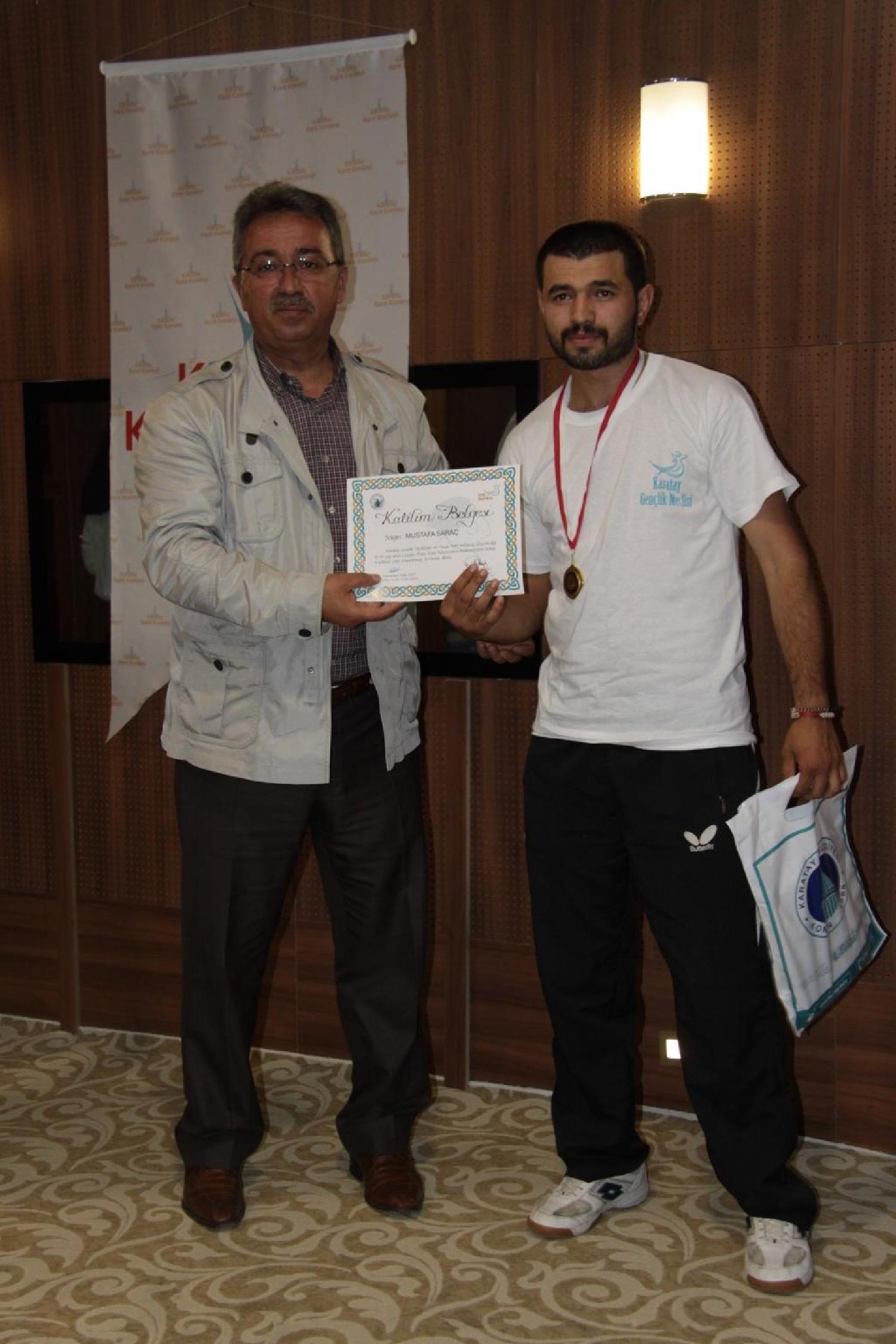 Konuşmaların ardından Gençler Masa Tenisi Turnuvasında dereceye girenlere törene katılan protokol tarafından madalya ve çeşitli hediyeler takdim edildi.