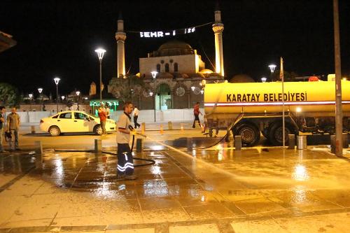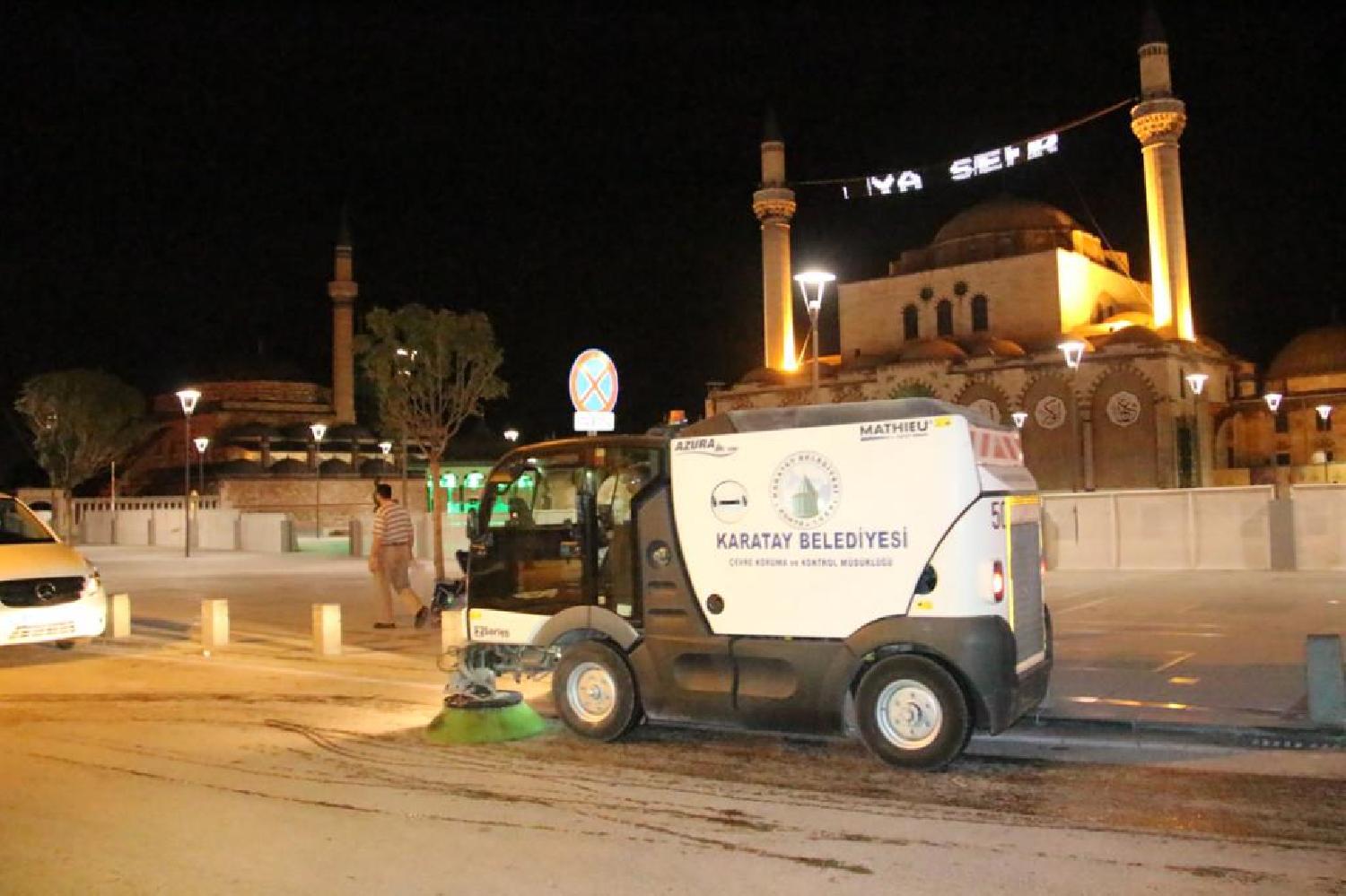 Her bayram öncesi olduğu gibi Ramazan Bayramı Arefe Gecesi’nden itibaren hızlı tempoyla temizlik çalışmalarını yürüten Karatay Belediyesi, oluşturulan temizlik ekipleriyle ilçe genelindeki mahalleler ile çarşı merkezi’ni bayram sabahına kadar temizledi.