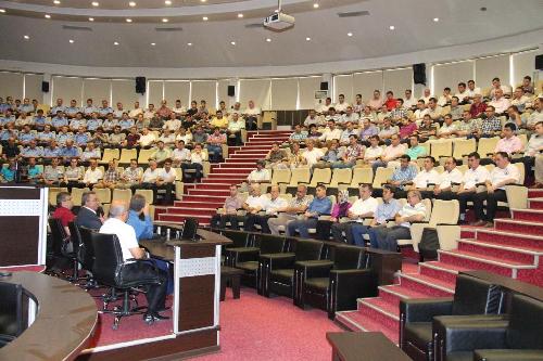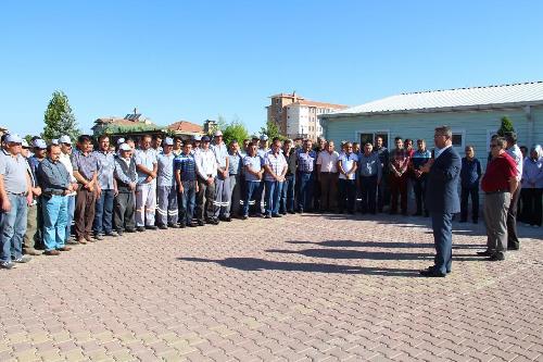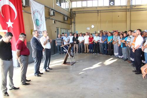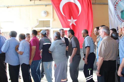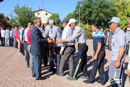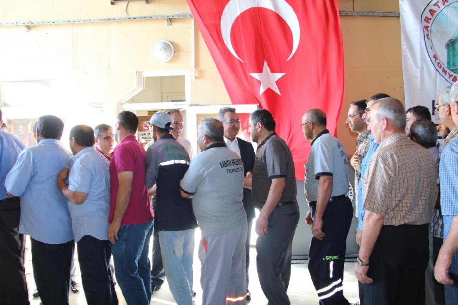 Hizmet İş Sendikası Konya Şube Başkanı Vacit Sır, Bem-Bir-Sen Konya Şube Başkanı Sait Közoğlu, Karatay Belediye Başkanı Mehmet Hançerli ve Belediye Başkan Yardımcıları mesai saatinin başlamasıyla birlikte belediye personelinin bayramını tebrik etti. Tatlıcak tesisleri, Park Bahçeler Müdürlüğü ve Belediye Hizmet binasında belediye personeline ilk olarak hitap eden Sendika Başkanları, bir Ramazan ayını daha geride bıraktıklarını ifade ederek bir aile ortamı içinde Karatay'ı en güzel şekilde daha da kalitesini artırarak yaşanabilir bir kent haline getirildiğini ve bu nedenle Başkan Mehmet Hançerli ve personeline teşekkür ederek bayramlarını tebrik ettiler. Ardından söz alan Karatay Belediye Başkanı Mehmet Hançerli, yaz - kış demeden çalışmaların devam ettiğini ve Karataylının rahat etmesi için 7/24 çalışmalarını sürdürdüklerini söyledi. Ramazan ayında Asfalt, Temizlik ve yeşil alan çalışmalarının aksatılmadan rutin olarak devam ettiğini dile getiren Hançerli, taşra ve şehir merkezine önemli hizmetler kazandırdıklarını belirterek "Bu tempoyla devam eden çalışmalar neticesinde 2015 yılı sonunda taşradaki çalışmaların %95'i tamamlanacak" dedi. İmkanı en iyi olan belediyelerden bir olduklarının altını çizen Başkan Hançerli, Bayramların birlik ve beraberliği pekiştirdiğini vurgularken böyle önemli günlerde belediye personelinin arefe gecesinden bayram namazına kadar çalışarak temiz bir Karatay meydana getirmesinin manidar olduğunu ve bu nedenle personeline teşekkür ederek bayramlarını tebrik etti.
