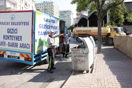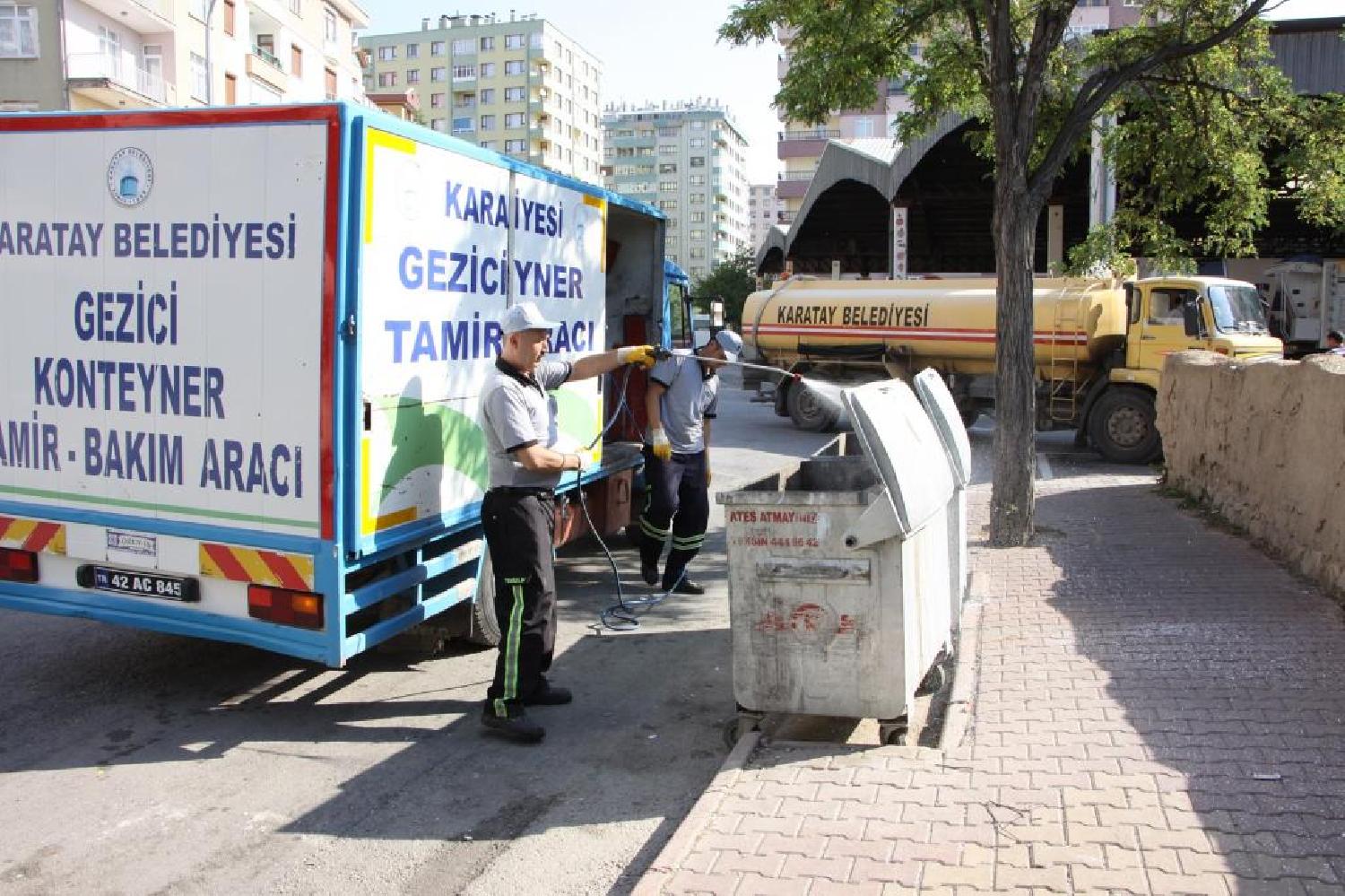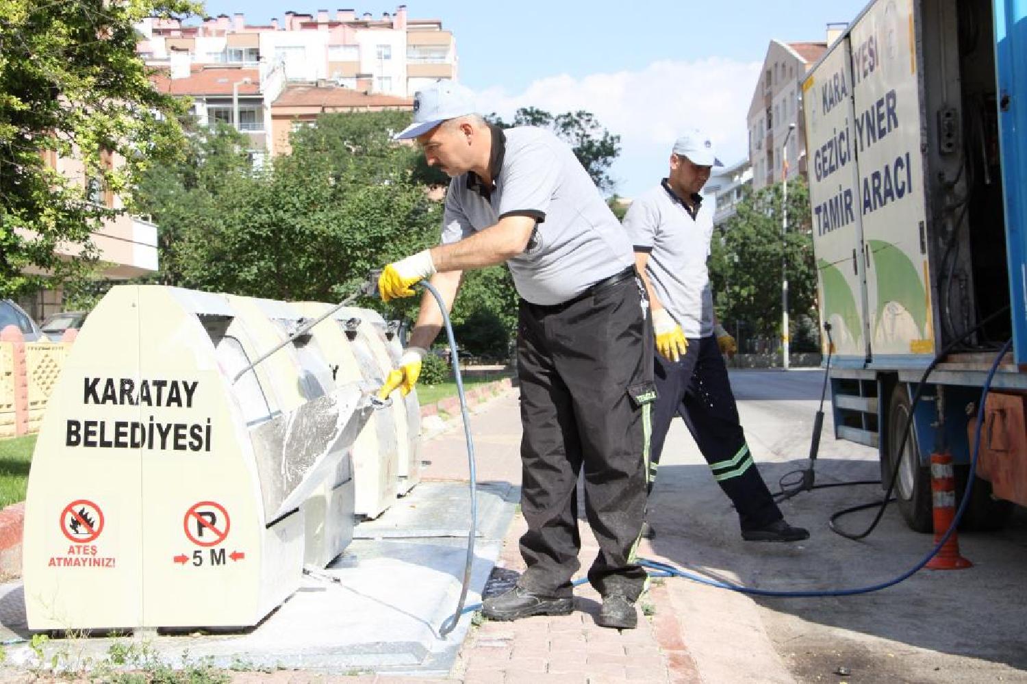 Konu ile ilgili bir açıklama yapan Karatay Belediye Başkanı Mehmet Hançerli, ilçede eskiyen çöp sandıklarının yenileri ile değiştirildiğini belirterek Çevre Koruma ve Kontrol Müdürlüğünün yıkama ve dezenfekte aracı ile kirlenen çöp konteynerlerini anında yıkayıp dezenfekte ettiğini söyledi. Çöp konteynerleri ve çöp aracı kasalarının temiz olmasının önemine değinen Hançerli, belediye bünyesinde hizmet veren gezici konteyner yıkama, tamir ve dezenfekte aracı ile kirli ve yıpranmış çöp konteynerlerinin hem temizlendiğini hem de bakımının yapıldığını belirterek bu çalışmanın sık sık tekrarlandığını vurguladı. Karatay’ın daha düzenli ve temiz bir ilçe olması amacıyla, ilçenin estetiğini ve sağlığını ilgilendiren temizlik ile ilgili çalışmaların titizlikle yürütüldüğünü dile getiren Başkan Hançerli, çöp konteynerlerinin ihtiyacı olan bakım ve dezenfekte çalışmalarının gezici araç ile yerinde yapıldığını kaydetti. “Halkımızdan isteğimiz çöplerini yere değil çöp konteynırlarının içerisine atmalarıdır” diyen Karatay Belediye Başkanı Mehmet Hançerli, vatandaşlardan daha duyarlı hareket etmelerini isteyerek evsel atıkların çöp poşeti kullanılarak atılmasının önemine değindi.