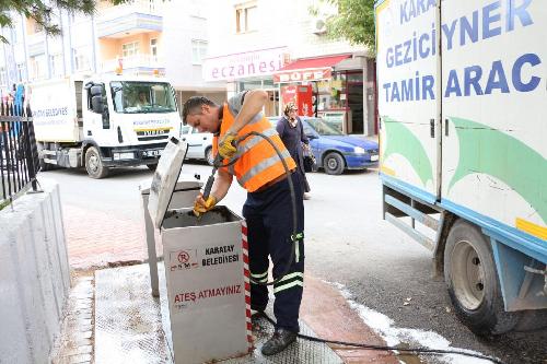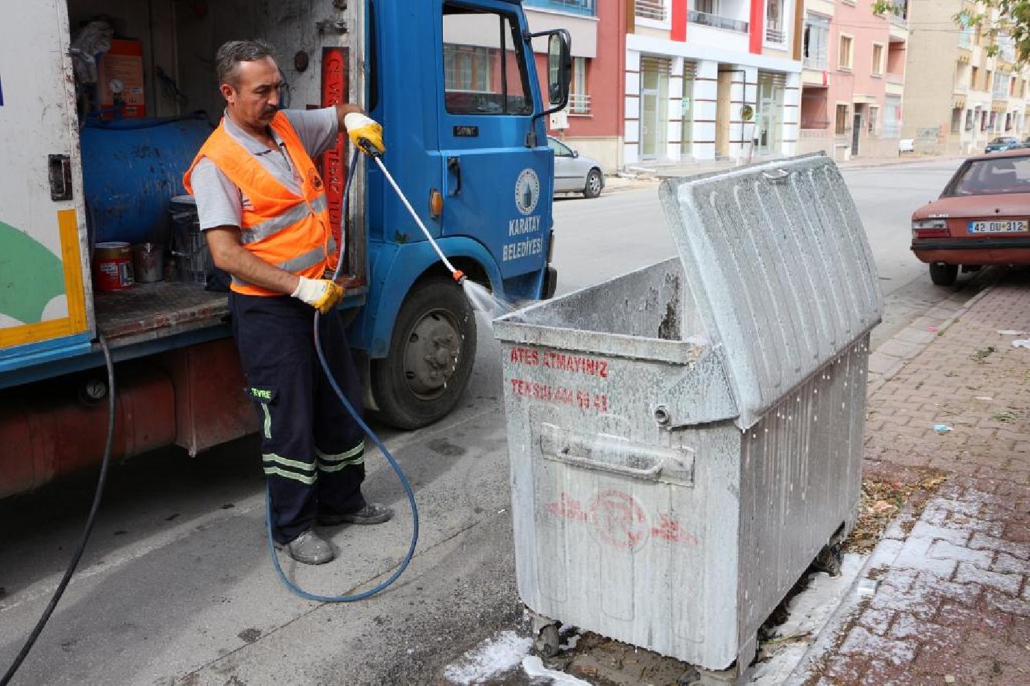 Konu ile ilgili bir açıklama yapan Karatay Belediye Başkanı Mehmet Hançerli, Karatay'ın temiz ve örnek yapısını korumak amacıyla Çevre Koruma Kontrol Müdürlüğünün yıkama ve dezenfekte aracı ile kirlenen çöp konteynırlarını anında yıkayıp dezenfekte ederek çürümesini ve ilaçlama yaparak da zararlı haşerelerin çoğalmasını önlemek amacıyla çalışmaların devam ettiğini söyledi.Özellikle geçtiğimiz kurban bayramının hemen akabinde başlatılan yıkama çalışmalarıyla konteynırların kötü koku yaymasını önlediklerini kaydeden Hançerli, İlçenin muhtelif yerlerinde, zamanla kirlenen çöp konteynırlarının tazyikli su ile yıkandığını ve ilaçlandığını söyledi.