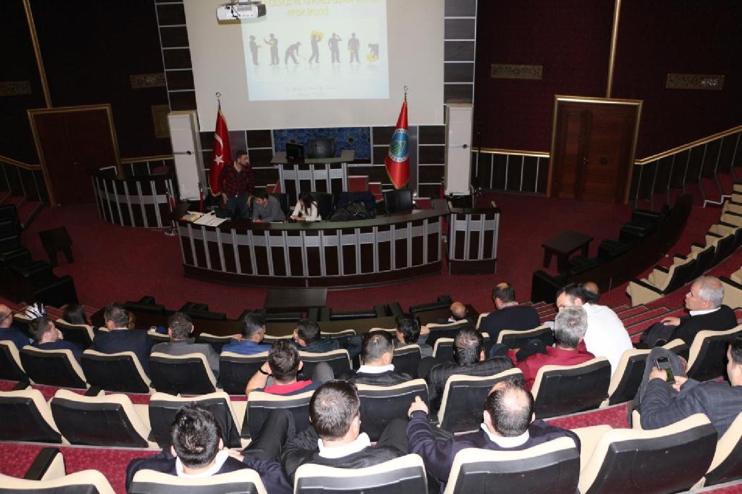 Karatay Belediyesi işçi personeline Belediye Hizmet Binası Meclis Salonu’nda İş Sağlığı Güvenliği Uzmanı Mehmet Eyigül tarafından İş Sağlığı ve Güvenliği konulu eğitim semineri verildi.