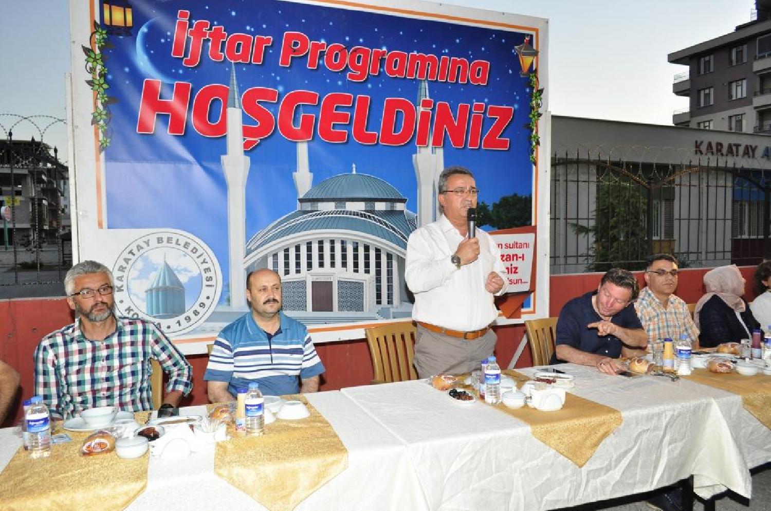 Karatay Şefkat Evlerinde ikamet eden ailelere yönelik düzenlenen iftar programında Karatay Belediye Meclis Üyeleri ve Karatay Kent Konseyi Bayan komisyon üyeleri de hazır bulunurken iftar öncesi kısa bir konuşma yapan Karatay Belediye Başkanı Mehmet Hançerli, Ramazan ayının birlik beraberlik ayı olduğunu ifade ederek birliktelik duygusunu pekiştirmek amacıyla aynı iftar sofrasında bir araya geldiklerini söyledi. Şefkat evleriyle ilgili ellerinden geleni yapmanın gayreti içerisinde olduklarını dile getiren Hançerli, bu yıl 4 blok ve 96 daireden oluşan evlerin cam balkonla kapatılacağının müjdesini verdi. Hançerli, Ramazan ayının bereket ayı olduğunu belirterek "Bugünkü iftar soframızda Suriye'den ve Irak'tan gelen kardeşlerimizle birlikte iftar etmenin mutluluğunu yaşıyoruz" dedi. Ramazan ayı içerisinde dar gelirli ailelerin elinden daha fazla tuttuklarını vurgulayan Başkan Mehmet Hançerli, özellikle çocuklara bayramlık sevincini yaşatmanın önemine değindi. Belediye Meclis Üyeleri ve Kent Konseyi Üyelerinin iftar saatlerinde ihtiyaç sahibi ailelerle bir araya geldiğini belirten Hançerli, “Halkımızın dertleri ile hemhal oluyoruz” dedi.