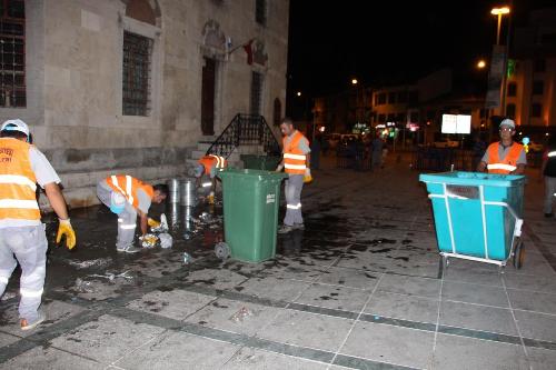 15 Temmuz darbe girişiminin ardından halkın nöbet tuttuğu Mevlana Meydanı nöbetin ilk gününden itibaren her sabah düzenli bir şekilde Karatay Belediyesi Çevre Koruma ve Kontrol Müdürlüğü ekiplerince temizlenerek yıkanıyor.