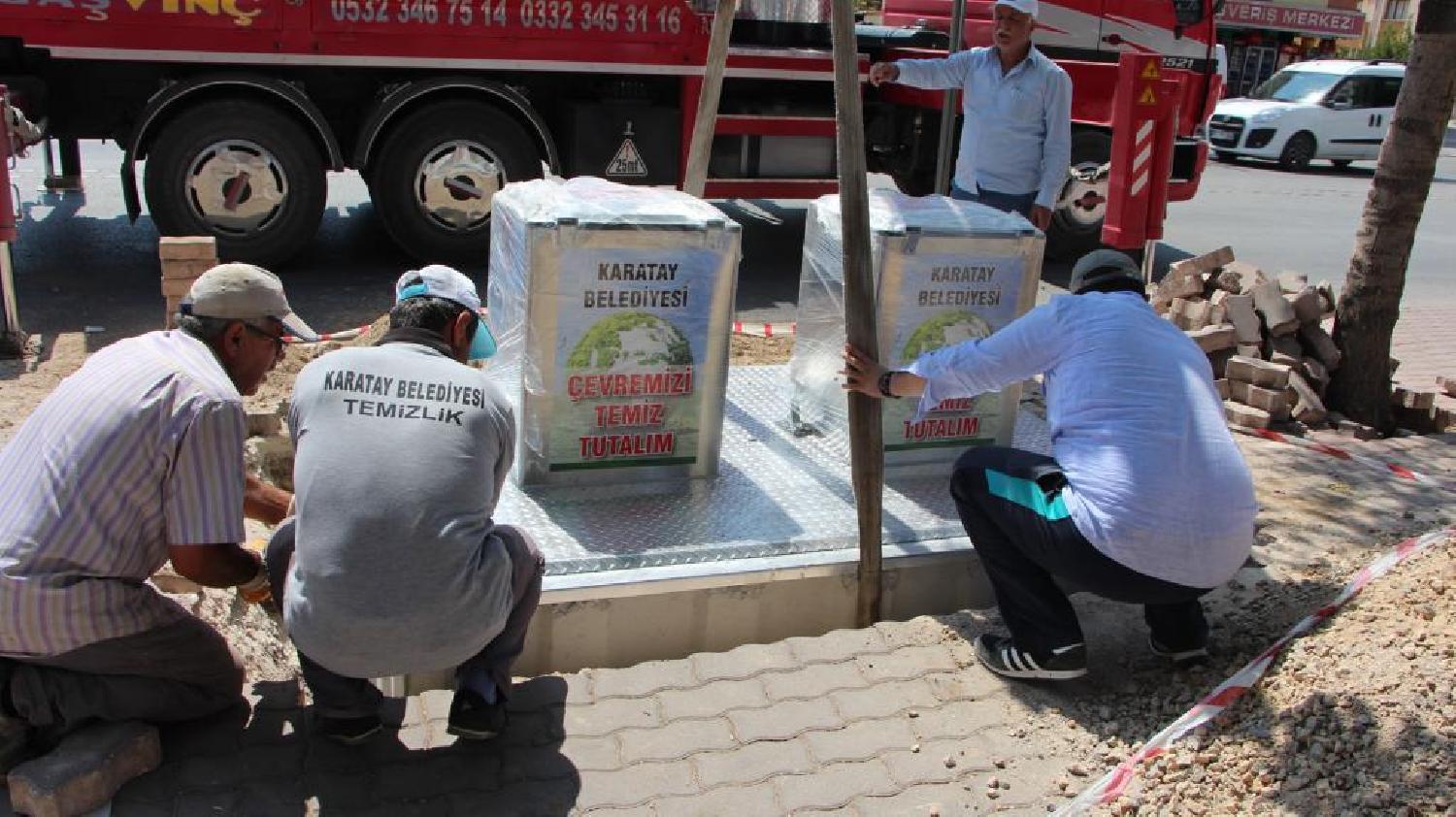 İlçe genelinde temizlik çalışmalarını sürdüren Karatay Belediyesi, modern görünümlü, 2.2 m³ iç hacimli yeraltı çöp konteyneri yerleştirme çalışmalarına devam ediyor.
