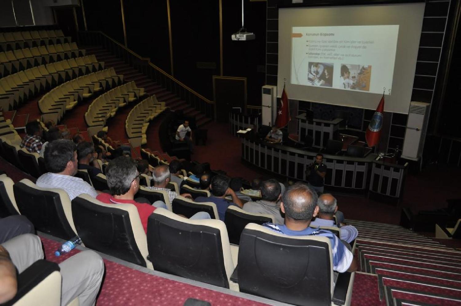 Karatay Belediyesi personeline Belediye Hizmet Binası Meclis Salonu’nda İş Sağlığı Güvenliği Uzmanı Murat Say tarafından İş Sağlığı ve Güvenliği eğitimlerinin usul ve esasları yönetmeliği hakkında seminer verildi.