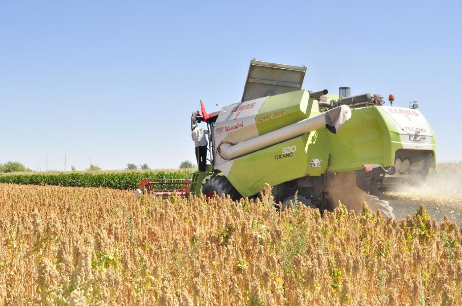 Protokol konuşmalarının ardından 2 dönümlük alanda ekili olan Kinoa bitkisinin ilk hasadı yapıldı.