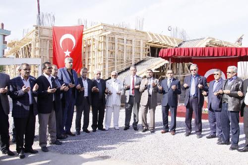 Konuşmaların ardından törene katılan protokol tarafından Mevlana Camii ve Kız Kuran Kursunun temeli okunan dualarla atıldı.