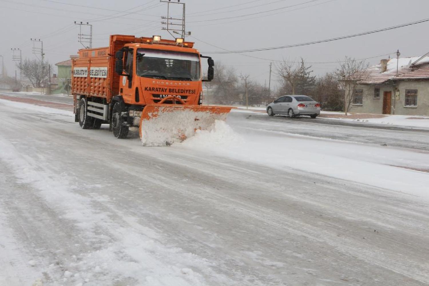 Karatay Belediyesi karla mücadele ekipleri kar küreme ve tuzlama çalışmalarına aralıksız devam ediyor. Karatay Belediyesi; solüsyon, tuzlama ve kaldırım temizleme ekipleri ile kar yağışının ardından vatandaşların mağdur olmaması için çalışmalara başladı. Merkez cadde ve yollardan başlatılan kar temizleme çalışmalarına ilçe genelinde devam edildi. Karatay Belediye Başkanı Mehmet Hançerli kar temizleme çalışmalarını yerinde inceledi.