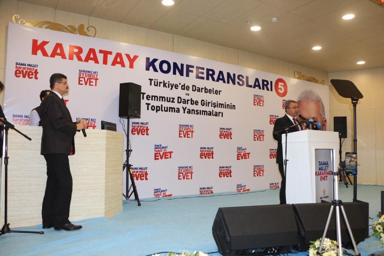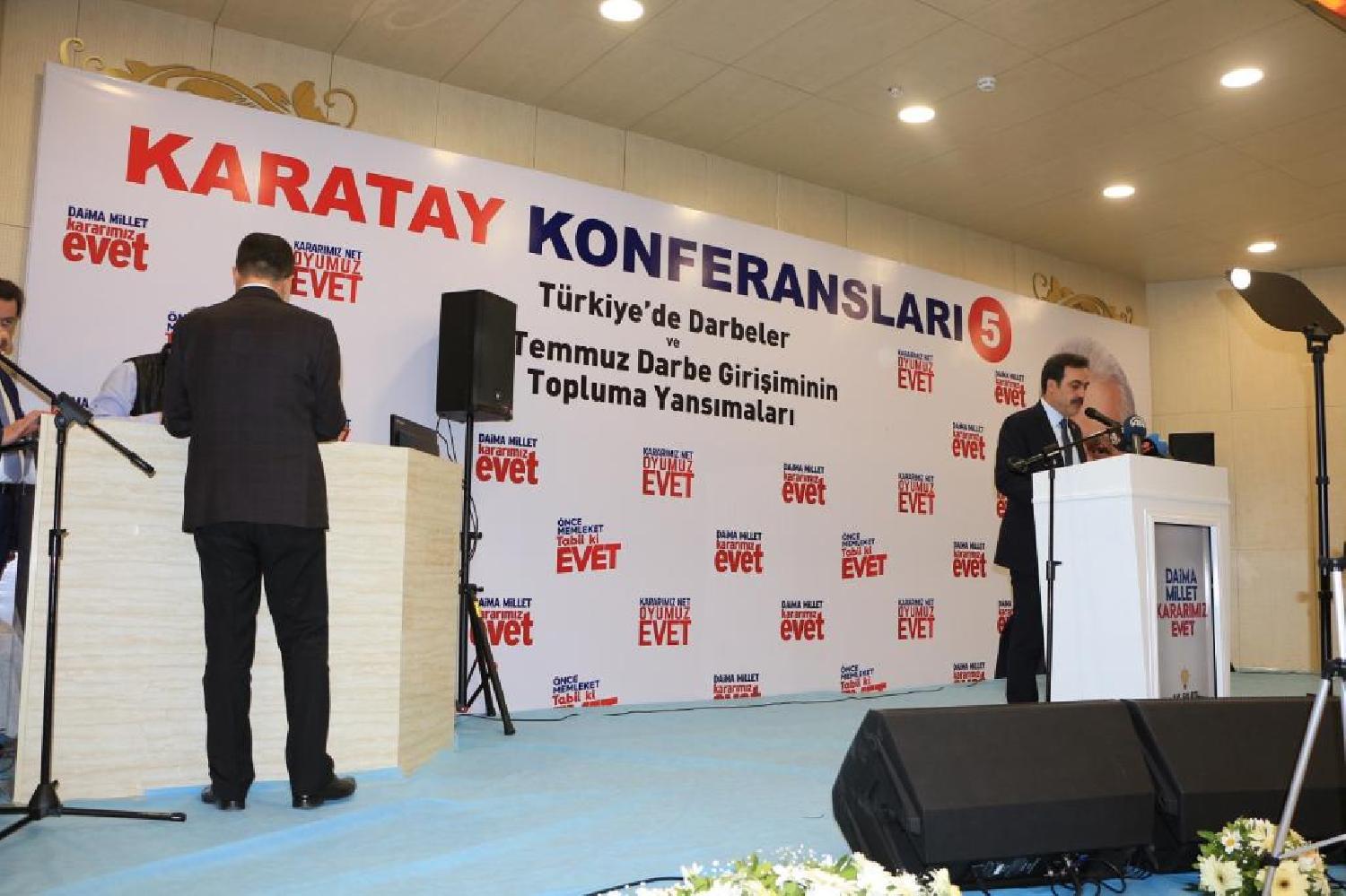 Celaleddin Karatay Kongre ve Gençlik Merkezinde düzenlenen 5. Karatay Konferansları kapsamında Prof. Dr. Mazhar Bağlı ve Doç. Dr. Ömer Akdağ katılımcılara hain darbe girişimi ile ilgili bir sunum gerçekleştirdi. Yaklaşık 2 bin 500 kişinin katılımıyla gerçekleştirilen programa İçişleri Bakanı Süleyman Soylu, AK Parti Konya Milletvekilleri Abdullah Ağralı, Muhammet Uğur Kaleli, Ömer Ünal, Hüsnüye Erdoğan, Leyla Şahin Usta, Mustafa Baloğlu, Ziya Altunyaldız ve Mehmet Babaoğlu ve Cumhurbaşkanı Başdanışmanı Mustafa Akış, Konya Büyükşehir Belediye Başkanı Tahir Akyürek, KTO Karatay Üniversitesi Rektörü Bayram Sade, Karatay Kaymakamı A. Selim Parlar, Selçuklu Belediye Başkanı Uğur İbrahim Altay, Meram Belediye Başkanı Fatma Toru, Karatay Belediye Başkanı Mehmet Hançerli, Konya Ticaret Odası Başkanı Selçuk Öztürk, Konya Sanayi Odası Başkanı Memiş Kütükcü, Karatay İlçe Milli Eğitim Müdürü Ömer Büyükmanav, KTO AK Parti Konya İl Başkanı Musa Arat, Konya Karatay Tüm ve Tüm İlçeleri Muhtarlar Derneği Başkanı Suat Uzun, AK Parti Teşkilat Üyeleri ve çok sayıda davetli katıldı.