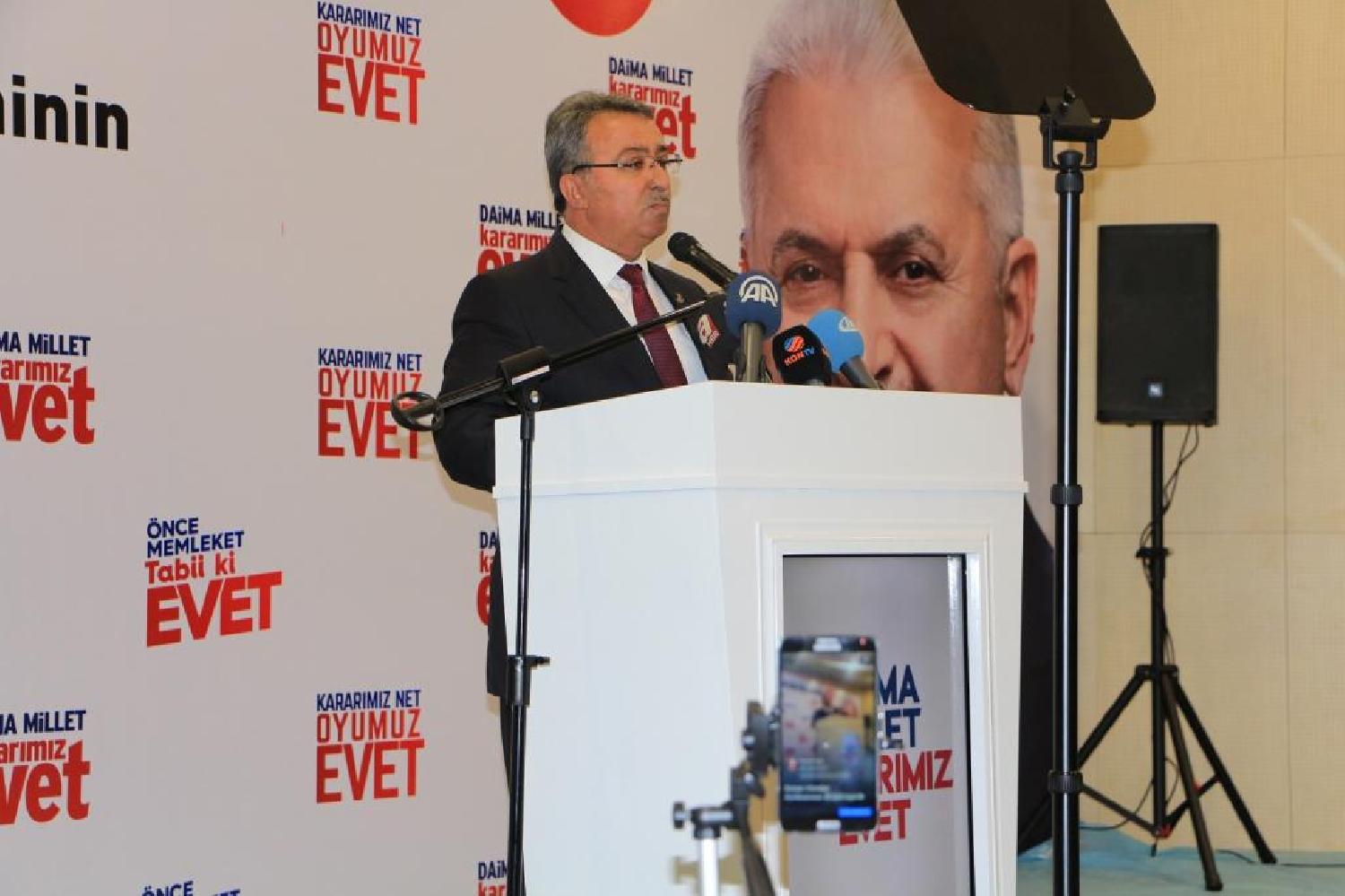 Konya Büyükşehir Belediye Başkanı Tahir Akyürek ise, "Konya'da büyük bir yarış var ama bu yarış diğer siyasi partilerle değil. evetlerin hangi ilçemizde daha çok çıkacağına yönelik bir yarış. Bugüne kadar Karatay bütün seçimlerde ipi hep en önde göğüsledi. Karataylı hemşerilerimizi davamıza ve ülkemize sahip çıktığından dolayı tebrik ediyorum" dedi. Başkan Akyürek, programın ev sahipliğinin yapan Karatay Belediyesi ve KTO Karatay Üniversitesine teşekkür etti.