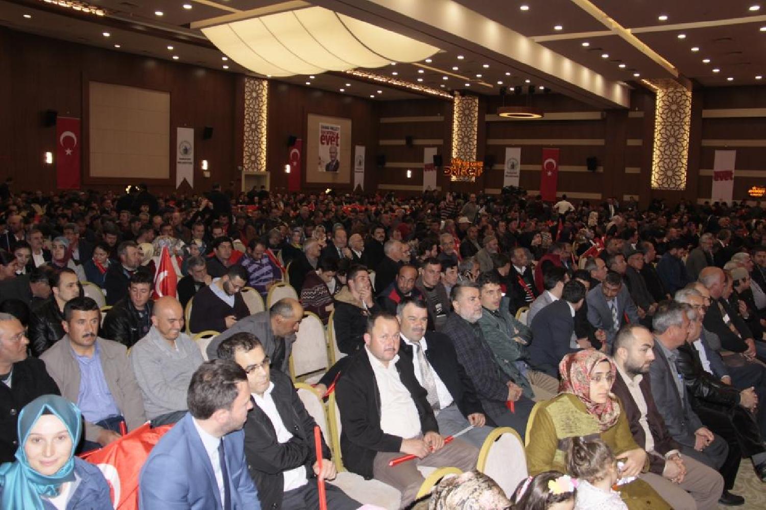 AK Parti Konya Milletvekili Mustafa Baloğlu, "İnsanların hayatlarında dönüm noktaları olduğu gibi devletlerin ve milletlerinde hayatlarında dönüm noktaları vardır. 16 Nisan halk oylaması da bunlardan biri. Bizlerde bu süreçte karış karış Türkiyemiz'i ziyaret ediyoruz. Konya bu şanlı davaya büyük destek veriyor. Karatay'ın rekoru var. 16 Nisan'da da Karatay kendi rekorunu yine kıracaktır" şeklinde konuştu.
