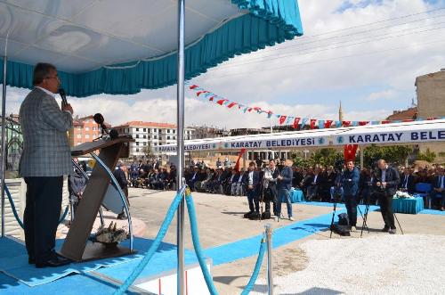 Karatay Belediye Başkanı Mehmet Hançerli hayırlı bir Cuma gününde hayırlı bir amaç için bir araya gelindiğini söyleyerek;Beşağıl, Obruk Akörenkışla, İstiklal Mahallelerinde imece ile, el ele vererek Kuran kursları yapıldığını belirtti. Başkan Hançerli, aynı birlikteliğin Hacı Hasanbaşı Kuran kursunda da gerçekleşeceğini söyledi. Belediye olarak 19 sağlık ocağı, 24 okul yaparak teslim ettiklerini dile getiren Başkan Hançerli " Duamız Belediye olarak bize mimari olarak özel bir camiyi Karatayımıza kazandırmamız içindi. Çok şükür ki Feritpaşa okulunun hemen yanında tamamen Belediyemiz öz kaynaklarını kullanarak; farklı mimarisiyle avizesiz aydınlanan, altında morgu gasılhanesi bulunan Çelebi Cami'yi yapmak nasip oldu."dedi.
