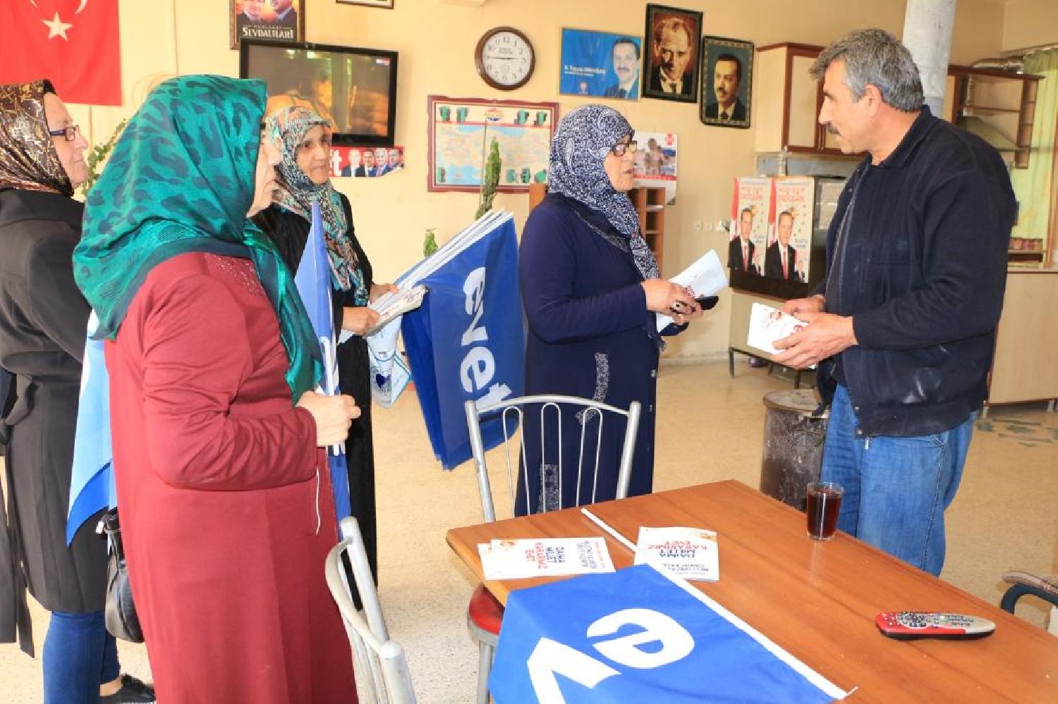 Karatay Belediyesi Kent Konseyi Kadın Meclis Üyeleri 16 Nisan’da yapılacak referandum öncesi çalışmaları hızlandırarak kapı kapı dolaşıp vatandaşlara ’Evet’ broşürü ve bayrak dağıttı