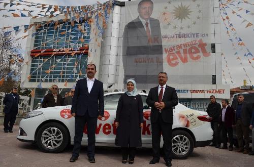 16 Nisan’da yapılacak 'Anayasa Değişikliği ve Cumhurbaşkanlığı Hükümet Sistemi' referandumuna sayılı günler kala Konya ve Karatay EVET diyor. Karatay Belediye Başkanı Mehmet Hançerli, 16 Nisan’da yapılacak Cumhurbaşkanlığı Hükümet Sistemi halk oylaması için ‘EVET’ çalışmaları kapsamında start verildiği günden itibaren Belediye Meclis Üyeleri, Karatay Belediyesi Kent Konseyi Kadın Meclis Üyeleri ve Muhtarlar ile beraber vatandaşlarla ile bir araya geldi. Karatay'ı karış karış gezerek yeni sistemin gerekliliğini anlatan Başkan Hançerli, Karatay olarak üzerlerine düşeni yapacaklarını belirterek, "Seçim startı verildiği ilk andan itibaren ilçe teşkilatımızla birlikte el ele vererek çalışmalarımızı yürütüyoruz. Verimli bir çalışma programı içerisindeyiz. Karatay her seçimde kendi rekorunu kıran bir ilçe bu önemli referandumda da yeni bir rekora imza atmak istiyoruz. Bu hedefi tutturmak içinde hep birlikte gece gündüz demeden çalıştık, inşallah hedefimize ulaşacağız" dedi.