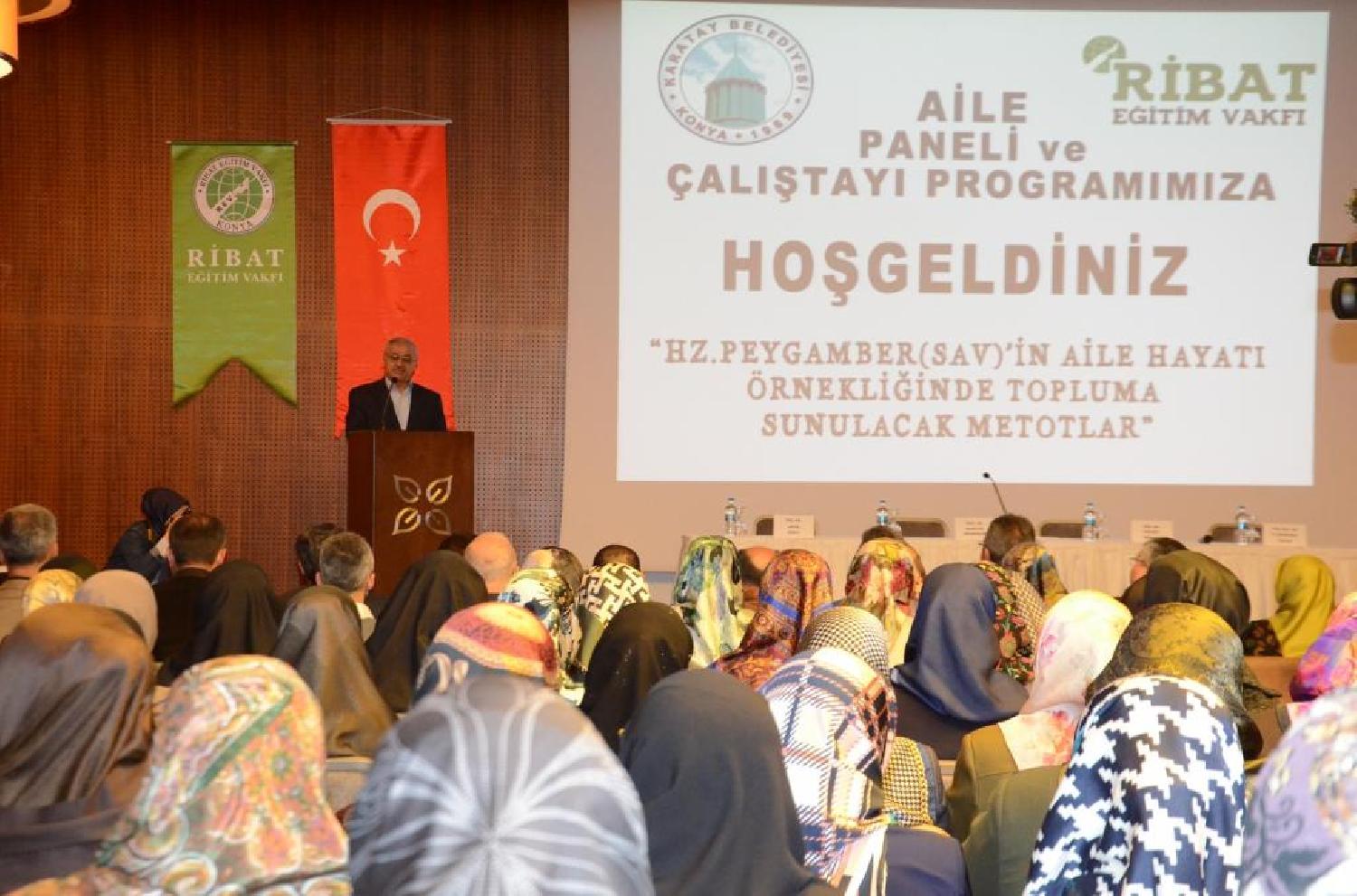 Karatay Belediyesi ve RİBAT'ın katkılarıyla düzenlenen programa; AK Parti Konya Milletvekili Hüsnüye Erdoğan, Karatay Belediye Başkanı Mehmet Hançerli, RİBAT Eğitim Vakfı Başkanı Muzaffer Büyük, Necmettin Erbakan Üniversitesi Rektör Yardımcısı Prof. Dr. Önder Kutlu, Karatay Müftüsü Hasan Hüseyin Arslantürk ve Karatay Belediyesi Meclis Üyeleri katıldı. Hz. Peygamber Efendimizin hayatının anlatıldığı programın açılış konuşmasını Ribat Eğitim Vakfı Başkanı Muzaffer Büyük yaptı. Muzaffer Büyük, batı özentisi hayatın aile kurumuna büyük zarar verdiğini söyledi. Küreselleşen dünyanın yaşadığı değişimlerden en fazla aile kurumunun etkilendiğine dikkat çeken Büyük şunları söyledi: "Aileler gün geçtikçe parçalanıyor. Küresel dünyada nikah yerine dikte dilen seviyeli bir ilişki, nitelikli beraberlik, partner gibi kavramlar evlilik müessesini zayıflattı. Ayrıca modern yaşam tarzının sürüklediği doyumsuzluk hissi fertlerden önce aile kurumuna zarar verdi."