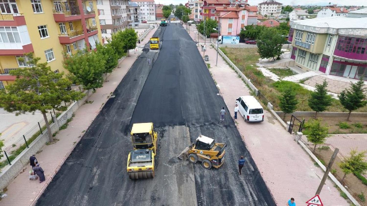 Karatay Belediyesi Fen İşleri Müdürlüğü ekipleri gece-gündüz devam eden çalışmalar kapsamında Menzil Caddesi'nin yollarını sıcak asfalta kavuşturdu
