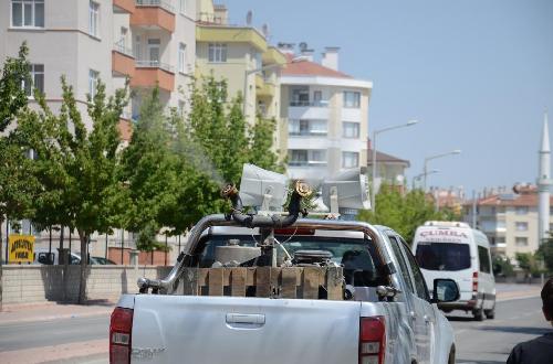 Karatay Belediyesi 2017 yılı ilaçlama çalışmasını başlattı. Veteriner İşleri  Müdürlüğü kontrolünde yürütülen ilaçlama çalışması, insan ve çevre sağlığı göz önünde bulundurularak, vatandaşlarımızın sıcak yaz günlerinde huzurlu ve rahat etmesini sağlayacak. Yapılan ilaçlama çalışmasıyla karasinek, sivrisinek vb. kanatlılara karşı; hava şartlarına bağlı olmak kaydıyla Kasım ayına kadar Karatay’ın tamamında mücadele devam edecek. Karatay Belediyesi Veteriner İşleri Müdürlüğü yetkilileri, ilçe sınırları içerisinde bulunan 82 mahallenin tamamında uzman kişiler tarafından haftalık olarak ULV cihazlı 3 araç ile ilaçlandığı belirtti. Kullanılan ilaçların Sağlık Bakanlığından onaylı olup belli kontrollerden geçtikten sonra kullanıldığı belirten yetkililer; uluslararası standartlara uygun ilaçlar ile merkezden 95 kilometre uzaklıktaki mahallelerimizde dahil olmak üzere belirli bir takvim çerçevesinde bütün mahallelerimizde ilaçlama çalışmasının sabah 06.00 – 10.00 ve akşam 18.00 – 22.00 saatleri arasında uygulandığını söyledi.