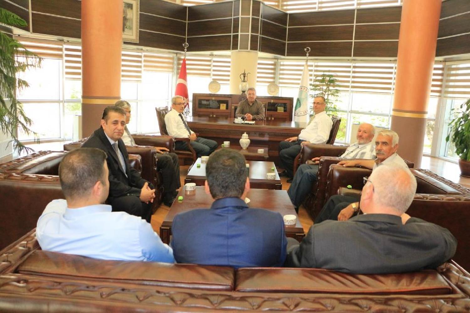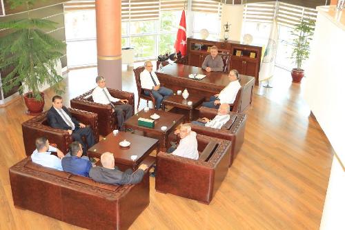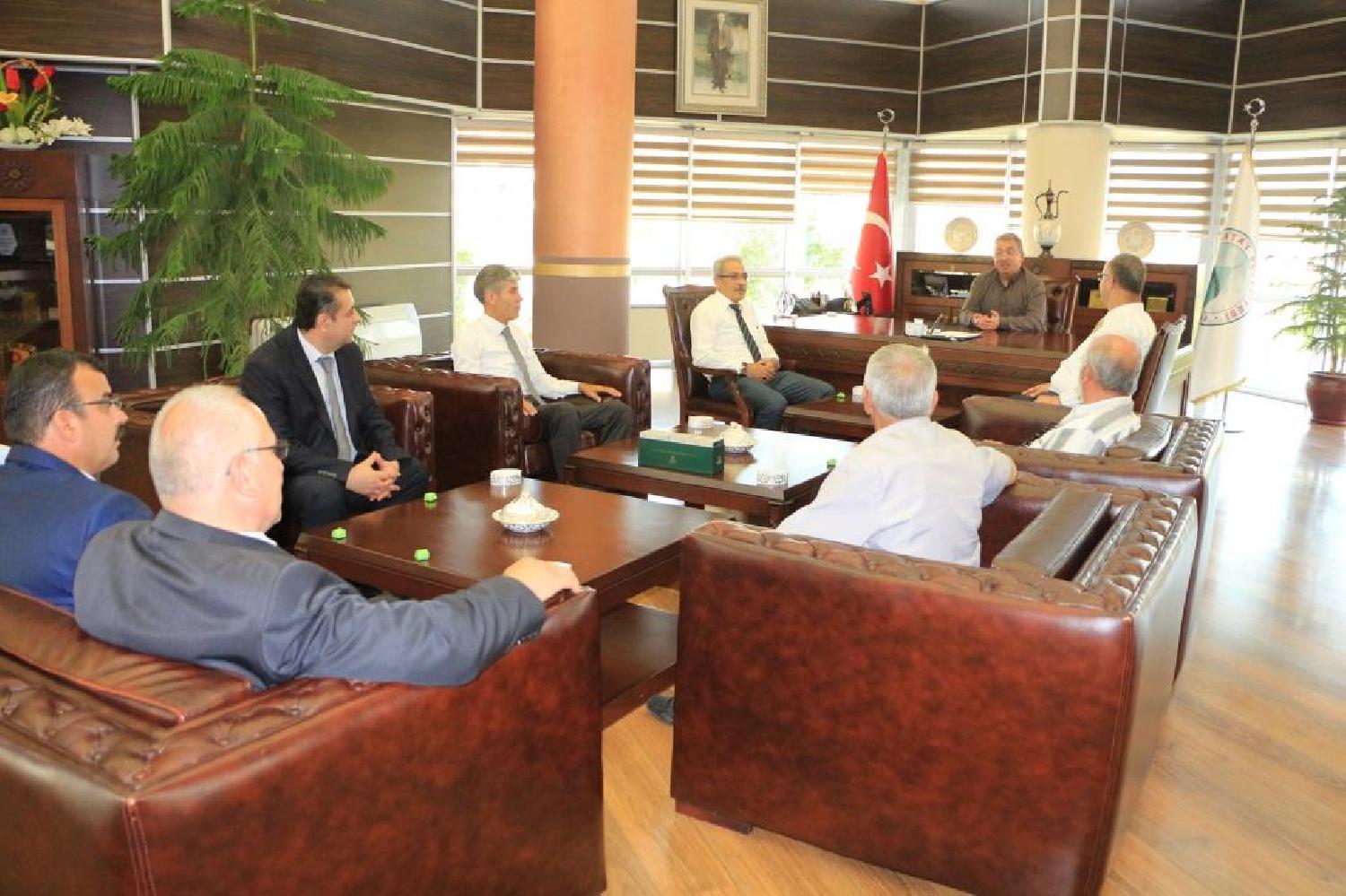 Konya Muhtarlar Birliği Derneği Başkanı Suat Uzun ve yönetimi Ramazan Bayramı dolayısıyla Karatay Belediye Başkanı Mehmet Hançerli'yi makamında ziyaret etti