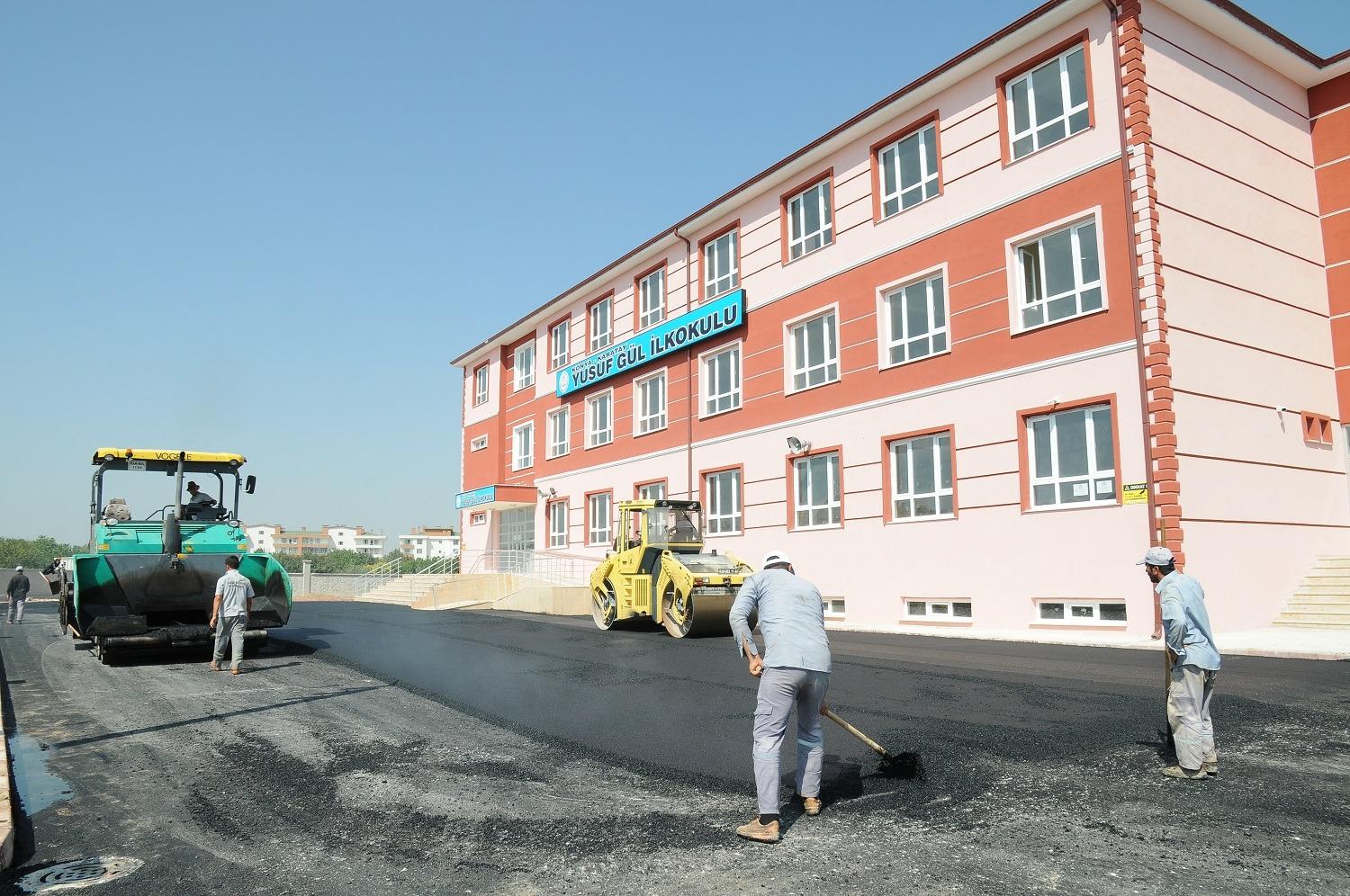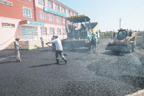 Karatay Belediyesi ilçenin cadde ve sokaklarında yaptığı asfalt çalışmalarının yanında eğitime katkı sağlamak amacıyla okul bahçelerini de asfaltlıyor