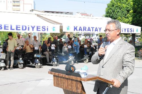 81 adet akülü engelli aracı Karatay Belediyesi ile Hollanda Konya Kültür ve Dayanışma Vakfı tarafından düzenlenen törenle önceden belirlenen ihtiyaç sahiplerine hediye edildi.