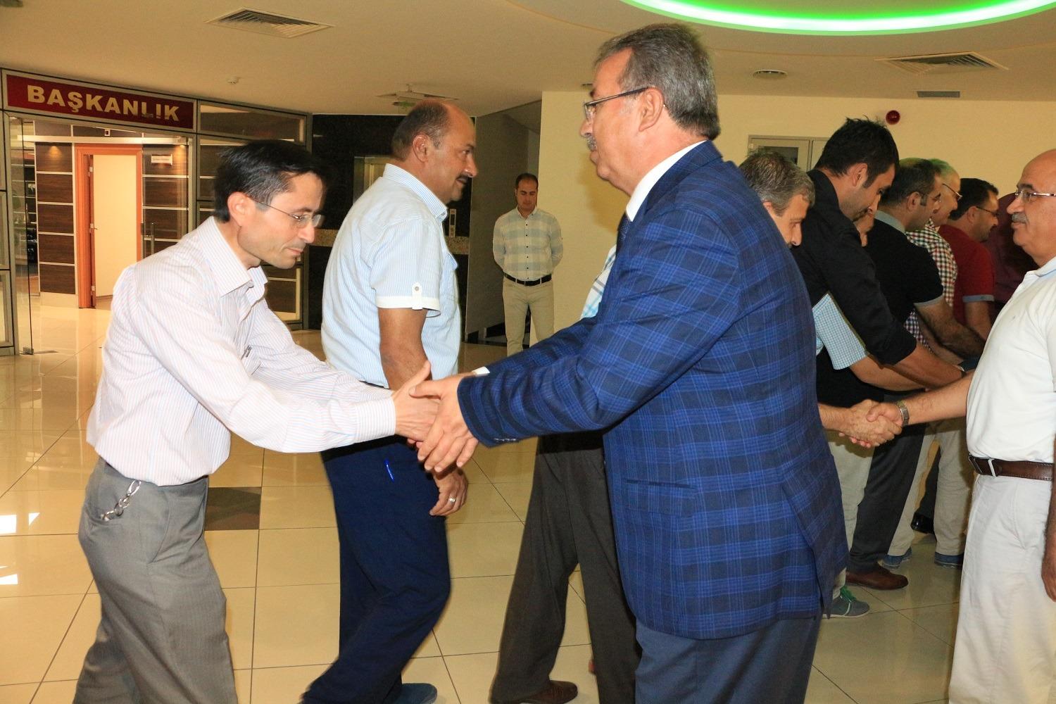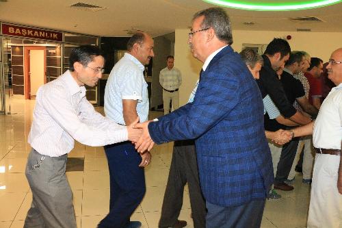 Başkan Mehmet Hançerli, konuşmasının ardından belediye çalışanlarıyla bayramlaştı.