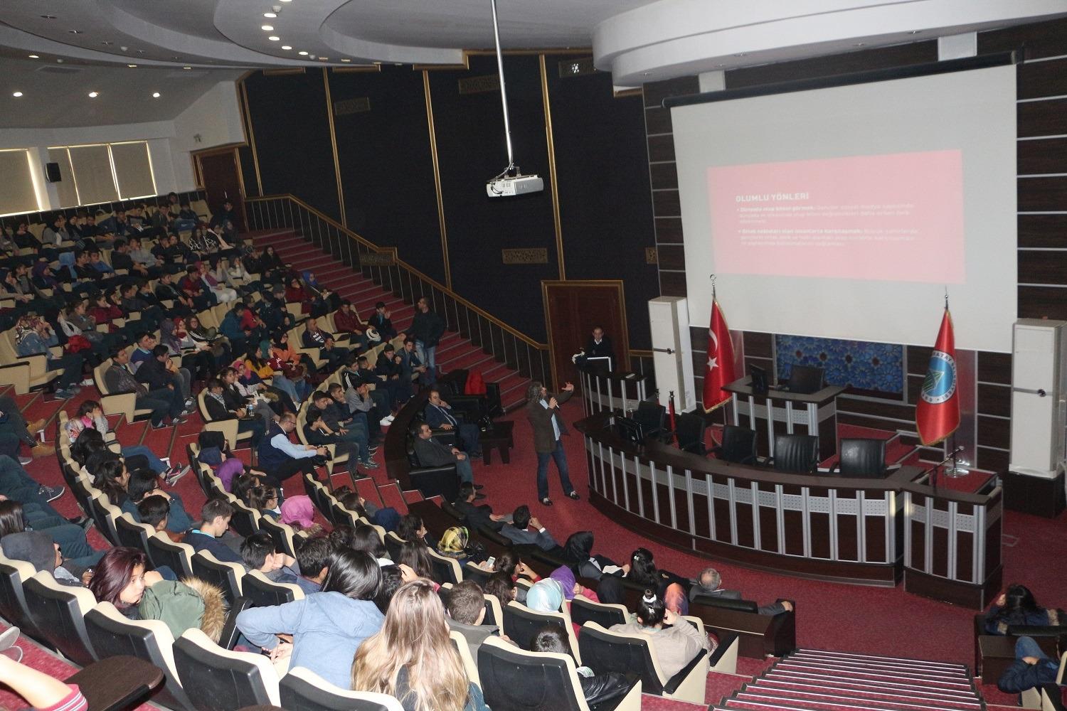 Karatay Belediyesi kültürel faaliyetler kapsamında, KTO Karatay Üniversitesi, Karatay İlçe Milli Eğitim Müdürlüğü ile 'Günümüzde Sosyal Medya Kullanımı' semineri düzenledi. KTO Karatay Üniversitesi Sosyal ve Beşeri Bilimler Fakültesi İletişim ve Tasarım Yönetimi Bölüm Başkanı Yrd. Doç. Dr. Bülent Bingöl tarafından gerçekleştirilen 'Günümüzde Sosyal Medya Kullanımı' konulu konferansa öğrenciler büyük ilgi gösterdi. Karatay Belediyesi Meclis Salonunda gerçekleştirilen konferansın sunuculuğunu KTO Karatay Üniversitesi Rehberlik Uzmanı Ali Bozgedik yaptı. Yrd. Doç. Dr. Bülent Bingöl'ün konuşmacı olarak katıldığı konferansta; çağın en işlek bilgi alış veriş merkezleri arasında sayılan sosyal medyanın toplum üzerindeki etkileri, hayatımızı nasıl değiştirdiği, mahremiyet, narsizm çıkmazlarındaki sosyal medya kullanıcılarının sanal varlıklarının karakterlerine olan yansımaları gibi pek çok konuya değinildi.