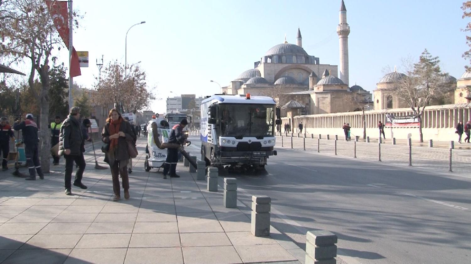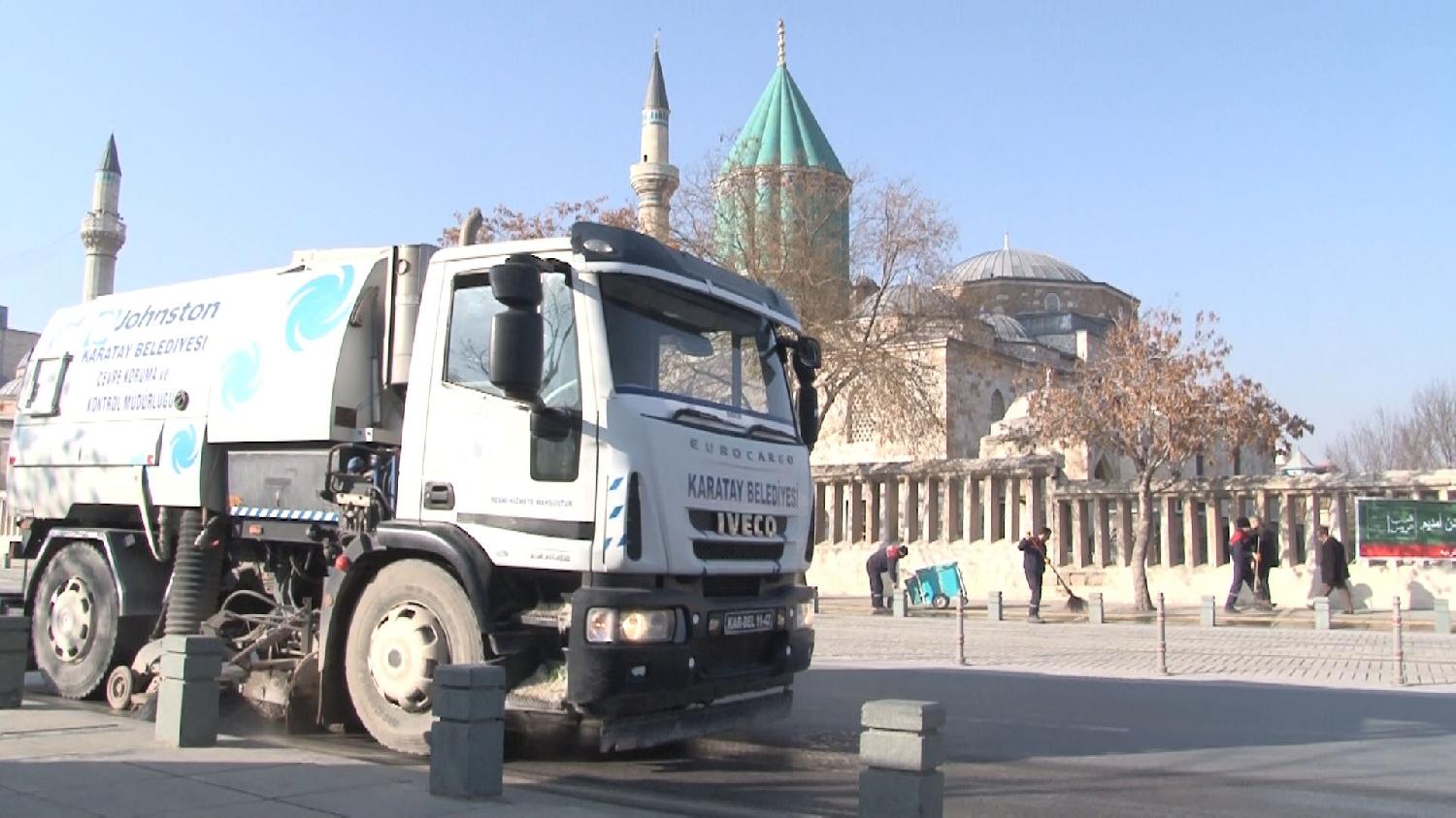 Karatay Belediyesi Çevre Koruma ve Kontrol Müdürlüğü Ekipleri Vuslat törenleri süresince şehir merkezinde temizlik faaliyetlerini aralıksız sürdürüyor.