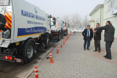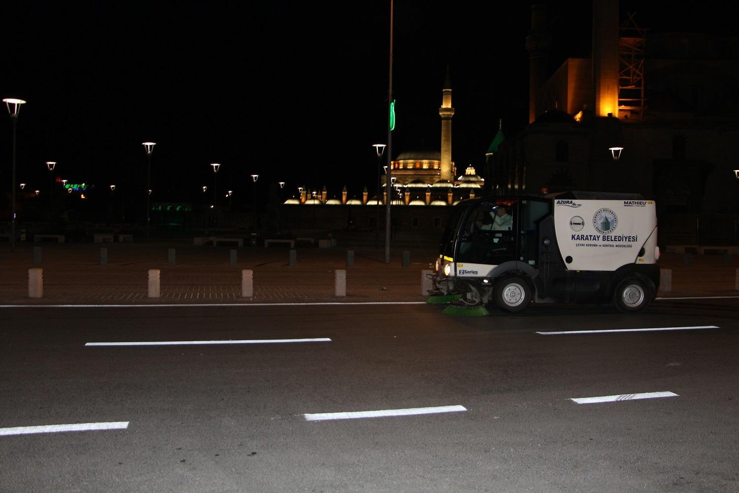 Karatay'ın Hazreti Mevlana'nın meftun olduğu kutlu bir belde olması nedeniyle Konya'nın aynası olduğunu söyleyen Karatay Belediye Başkanı Mehmet Hançerli "Hemşerilerimize ve dünyanın dört bir yanından Hazreti Mevlana'nın çağrısına uyarak Karatay'ımıza gelen misafirlerimize sokakları, caddeleri ve meydanları pırıl pırıl bir Karatay sunmak bizim asli görevimizdir. Bu görevi layığı ile yerine getirmek için Çevre Koruma ve Kontrol Müdürlüğü ekiplerimiz 35 çöp kamyonu 17 süpürgeli araç ve 218 personel ile gece gündüz çalışıyorlar." dedi. Başkan Hançerli özellikle gün içerisinde büyük yoğunluk yaşanan ilçe merkezinde geceleri yıkama tankerleri ile meydanların ve caddelerin yıkandığını, ardından süpürgeli araçlarla süpürülerek sabaha hazırlandığını belirtti.