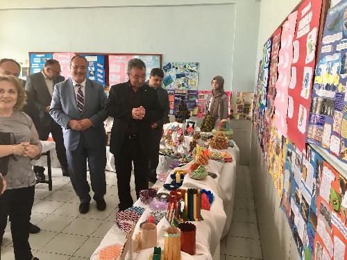 BAŞKAN HANÇERLİ BİLİM FUARINDA ÖĞRENCİLERİN PROJELERİNİ İNCELEDİ
