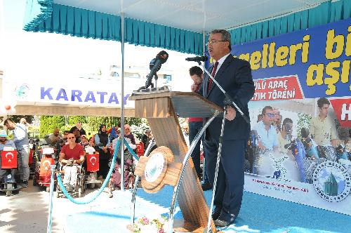 KARATAY BELEDİYESİ İHTİYAÇ SAHİPLERİNE 160 AKÜLÜ ENGELLİ ARACI VE 30 TEKERLEKLİ SANDALYE HEDİYE ETTİ