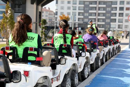 Karatay Belediyesi tarafından ilçeye kazandırılan Karatay Trafik Eğitim Parkı’nda ilkokul 4’ncü sınıf öğrencilerine yönelik başlatılan teorik ve pratik trafik eğitimleri devam ediyor. Karatay Belediye Başkan Hasan Kılca da, Konya İl Emniyet Müdürü Engin Dinç, İl Emniyet Müdür Yardımcısı Ramazan Bozcayüce, Konya İl Jandarma Komutanlığı Trafik Şube Müdürü Hüseyin Şahin, Karatay Kaymakamı Yavuz Güner ve Karatay İlçe Milli Eğitim Müdürü Sami Sağdıç ile birlikte Karatay Trafik Eğitim Parkı’nı ziyaret ederek burada eğitim gören öğrencilerle buluştu. Karatay’da eğitim gören ilkokul 4’ncü sınıf 6 bin 800 öğrencinin bu dönem Karatay Trafik Eğitim Parkı’nda trafik kurallarını hem uygulamalı ve hem teorik olarak öğreneceğini söyleyen Karatay Belediye Başkanı Hasan Kılca, “Konya ve ilçemiz için önemli bir değer olan Karatay Trafik Eğitim Parkımız, polisimiz ve jandarmamızın birlikte eğitim verdiği Türkiye’deki tek merkezdir” dedi.