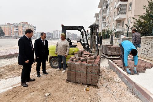 Karatay Belediye Başkanı Hasan Kılca da, Belediye Başkan Yardımcısı Ramazan Şevik ile birlikte çalışmaların sürdüğü Hacı Yusuf Mescit Mahallesi’ni ziyaret ederek ekiplerin pazar yeri çalışmalarını yerinde inceledi.