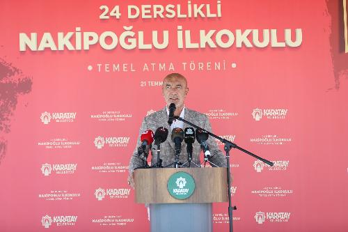 Konuşmaların ardından Nakipoğlu Mahallesi’ne kazandırılacak 24 derslikli Karatay Belediyesi Osman Benliler İlkokulu’nun temeli, dualar eşliğinde atıldı.