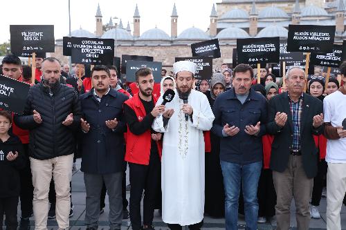 Selim Sultan Camii’nde kılınan sabah namazının ardından Filistin’de hayatını kaybeden siviller için dua edildi, destek mesajları verildi. Karatay Belediye Başkanı Hasan Kılca da Karatay Gençlik Meclisi tarafından düzenlenen programa katıldı.
