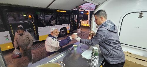 Belediye ekipleri, çorba ikramını sabah saatlerinde özellikle ilçede işçi servislerinin yoğun olduğu yerlerde, otobüs duraklarında ve meydanlarda yapıyor.