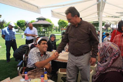 Konuşmaların ardından engelliler ve aileleriyle sohbet eden Karatay Belediye Başkanı Mehmet Hançerli, piknik programında katılımcılara geleneksel düğün pilavı ikram etti.
