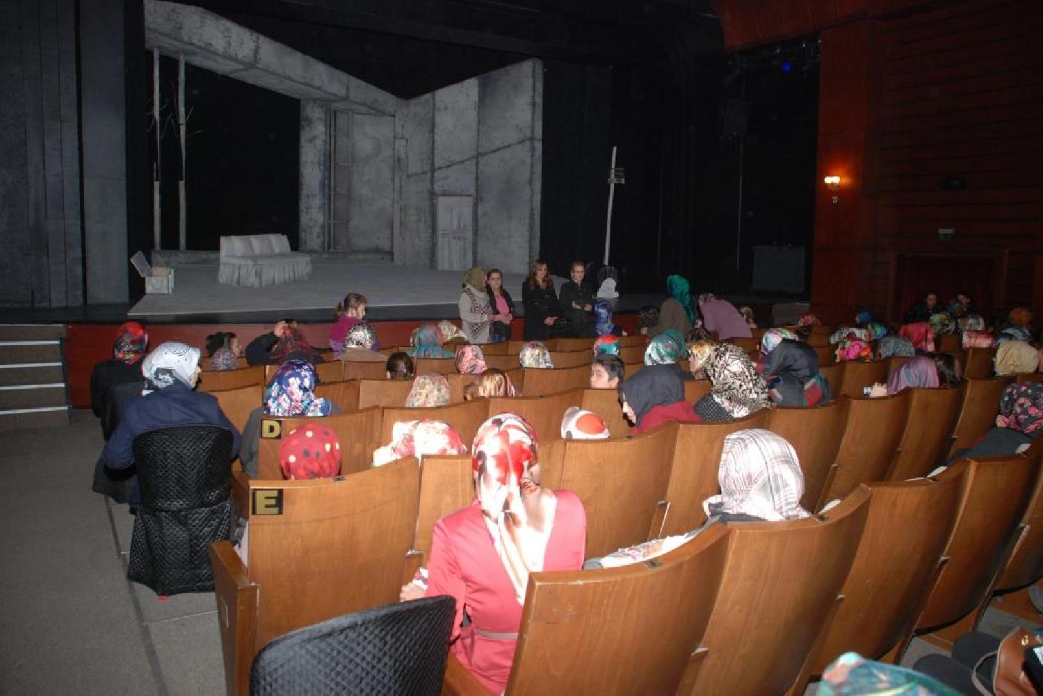 Karatay Halk Eğitim Kurslarında el sanatları ve mesleki eğitim gören bayan kursiyerler Devlet Tiyatrolarında sahnelenen "Töre" adlı oyunda buluştular.