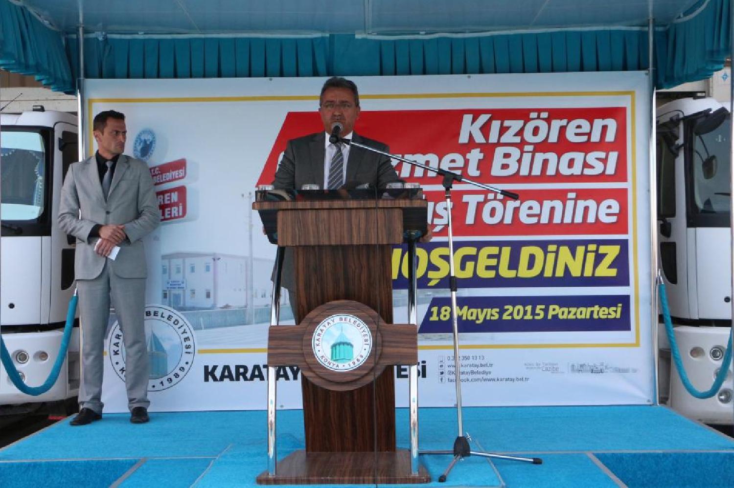 Büyükşehir Belediyesi Mehter Takımı’nın icra ettiği marşlar ile başlayan tören; protokol konuşmaları ile devam etti. Törende ilk olarak Kızören Muhtarı Nuri Köroğlu söz aldı. Köroğlu, Karatay Belediyesi’ne yaptığı ek hizmet binası ve sosyal tesis için teşekkür etti . Ardından söz alan Ak Parti Karatay İlçe Başkanı Mehmet Genç “Yapılan tesisler bölge halkımızın ihtiyacından kaynaklı olup, burada yaşayan halkımıza gerekli önem ve değerin verildiğinin kanıtıdır. Yapılacak olan yeni çalışmalarında müjdecisidir. Yapılan bu hizmetlerden dolayı Karatay Belediyemize teşekkür ediyorum” dedi. Ak Parti Karatay İlçe Başkanı Mehmet Genç’in ardından söz alan Halk Sağlığı İl Müdürü Dr. Hasan Öznavruz “Hizmet yarışında her gün yeni bir tesis açıyoruz. Vatandaşın yararına olan her hizmette Karatay Belediyesi yanımızda oldu. Kızören Ek Hizmet Binası’nda bizim içinde Aile Sağlığı Merkezi tesis ettiler. Geçmişe baktığımızda çok zor koşullarda sağlık hizmetleri verir durumdayken sağlıkta dönüşüm sistemi ile birlikte artık Konya hava ambulansı merkezlerimizden biri olmuş durumda. Hizmet yarışında her zaman sağlık alanında büyük hassasiyet göstermiş olan Karatay Belediye Başkanı Mehmet Hançerli’ye teşekkür ediyorum.” dedi. Halk Sağlığı İl Müdürü Dr. Hasan Öznavruz’un ardında söz alan Karatay Belediye Başkanı Mehmet Hançerli “6360 Sayılı Yeni Büyükşehir Yasası’nda bahsi geçen yerinden yönetimin uygulanmış hali Kızören Mahallesine yapımı tamamlanan Ek Hizmet ve Sosyal Tesis binasıdır. 8.045 m² alana sahip tesis içerisinde hemşerilerimizin tedavisini olabilmesi için Aile Sağlığı Merkezi, hemşerilerimize daha iyi hizmet edebilmek için yeni bağlanan mahallelerimizin muhtarları ile toplantılar yapacağımız ve hemşerilerimizin nişan törenleri gibi organizasyonlar gerçekleştirebileceği 200 kişilik bir toplantı odası, belediye hizmetlerinin verileceği bürolar, içerisinde Büyükşehir Belediyesi İtfaiyesi, süpürgeli aracımız, çöp kamyonumuz ve arazöz bulunan hangarımız mevcuttur. Yeni bağlanan mahallelere hizmetlerimiz aralıksız devam etmektedir. Karatay’ın nufusunun %7’si yeni bağlanan mahallerimizde yaşamaktadır. 6360 Sayılı Yeni Büyükşehir Yasası’nı en iyi uygulayan ve taşraya en hızlı şekilde giren belediyelerden biri Karatay Belediyesi’dir. Hazreti Mevlana’nın diyarı Karatay’ımıza kazandırılan Kızören Ek Hizmet Binası ve Sosyal Tesisi’nin hayırlı olmasını dilerim.”dedi.