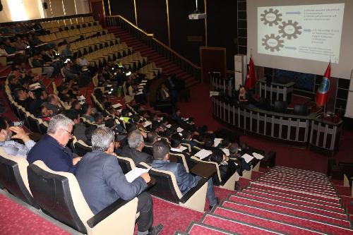 İş Sağlığı ve İş Güvenliğinin Genel Prensipleri'nin bahsedildiği seminerde İş Sağlığı ve Güvenliğinin Amacı, Dünya’da İş Sağlığı ve Güvenliği, Ülkemizde İş Sağlığı ve Güvenliği, Genel Sağlık Kavramı, Meslek Hastalığı, İş Kazası, İş Kazası ve Meslek Hastalıklarının Nedeni, Tehlikeli Davranışlar ve Durum konuları ele alındı. İş Sağlığı ve Güvenliğinin, işyerlerinde işin yürütümü sırasında, çeşitli sebeplerden kaynaklanan, çalışanların sağlığına ve güvenliğine zarar verebilecek şartlardan korunmak amacıyla yapılan sistemli ve bilimsel çalışmalar olduğunu belirten Uzman Mehmet Eyigül, "İş sağlığı ve kendi sağlımız için ön görülen kurallara hep birlikte uymak zorundayız" dedi.