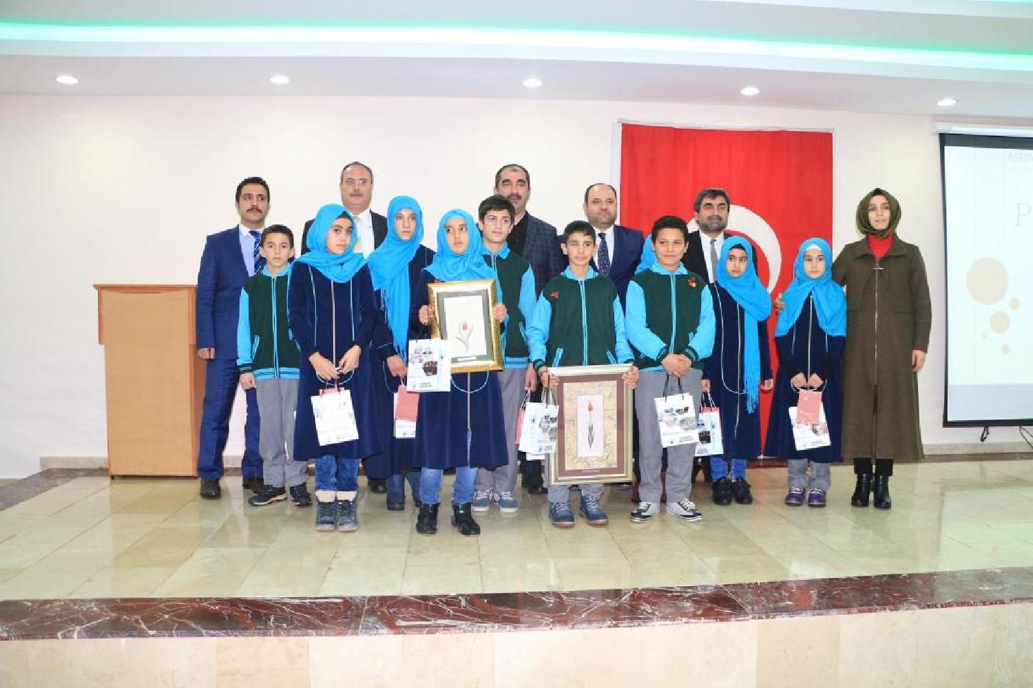 Oldukça çekişmeli geçen yarışmada Mehmetçik İlkokulu öğrencilerinden Evin Aydınay 3., Derviş Ali Yıldırım 2., Abdulvahap Bahar ise 1. oldu. Yarışmanın birincisine yarım altın, ikincisine çeyrek altın, üçüncüsüne de gram altın hediye edildi.