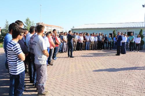 Birim amirleri ile birlikte ilk olarak Tatlıcak Tesislerinde Fen İşleri, Çevre Koruma ve Kontrol, Makine İkmal Bakım ve Onarım Müdürlüğünde çalışan personel ile bayramlaşan Başkan Hançerli daha sonra Park ve Bahçeler Müdürlüğü personeli ile bayramlaştı. Başkan Mehmet Hançerli, son olarak hizmet binasında çalışan memurların Ramazan Bayramını tebrik etti. Başkan Hançerli'ye Hizmet-İş Sendikası Konya Şube Başkanı Vacit Sır da eşlik etti. Karatay'ın geleceği için gece gündüz demeden tüm enerjisiyle çalışan, siz değerli çalışma arkadaşlarımızla bir araya gelmenin mutluluğu içerisindeyim. Rabbim birliğimizi, dirliğimizi bozmasın diyen Karatay Belediye Başkanı Mehmet Hançerli, "Biz bir aileyiz ve birbirimize verdiğimiz destek ile güzel çalışmalar yaptığımızı düşünüyorum. Daha güzel çalışmalar için elimizden gelen bütün çabayı hep birlikte gösteriyoruz. Bir ay boyunca hep birlikte bolluk, bereket dolu bir Ramazan ayı geçirdik. Bayramlar, birlik, beraberlik ve kardeşlik duygularının en yoğun yaşandığı müstesna günlerdir" dedi. Vatandaşların rahat ve huzurlu bir bayram geçirmeleri için arife günü başlatılan ve bayram süresince de devam eden çalışmalardan dolayı personele teşekkür ederek konuşmasını sürdüren Karatay Belediye Başkanı Mehmet Hançerli, ekip ruhuyla yaptıkları çalışmalar ile Karatay'ı modern bir ilçe konumuna kavuşturmak için çalışmaya devam edeceklerini söyledi. Terör olayları ile birlikte gelen şehit haberlerine de tepki gösteren Başkan Hançerli, "İslam coğrafyasının zenginliğine, güzelliğine batının iştahı kabarıyor. Onların Türkiye üzerinde oynamaya çalıştıkları tüm oyunlara gönül gönüle olarak güçlü bir şekilde cevap vermeliyiz" ifadelerini kullandı.