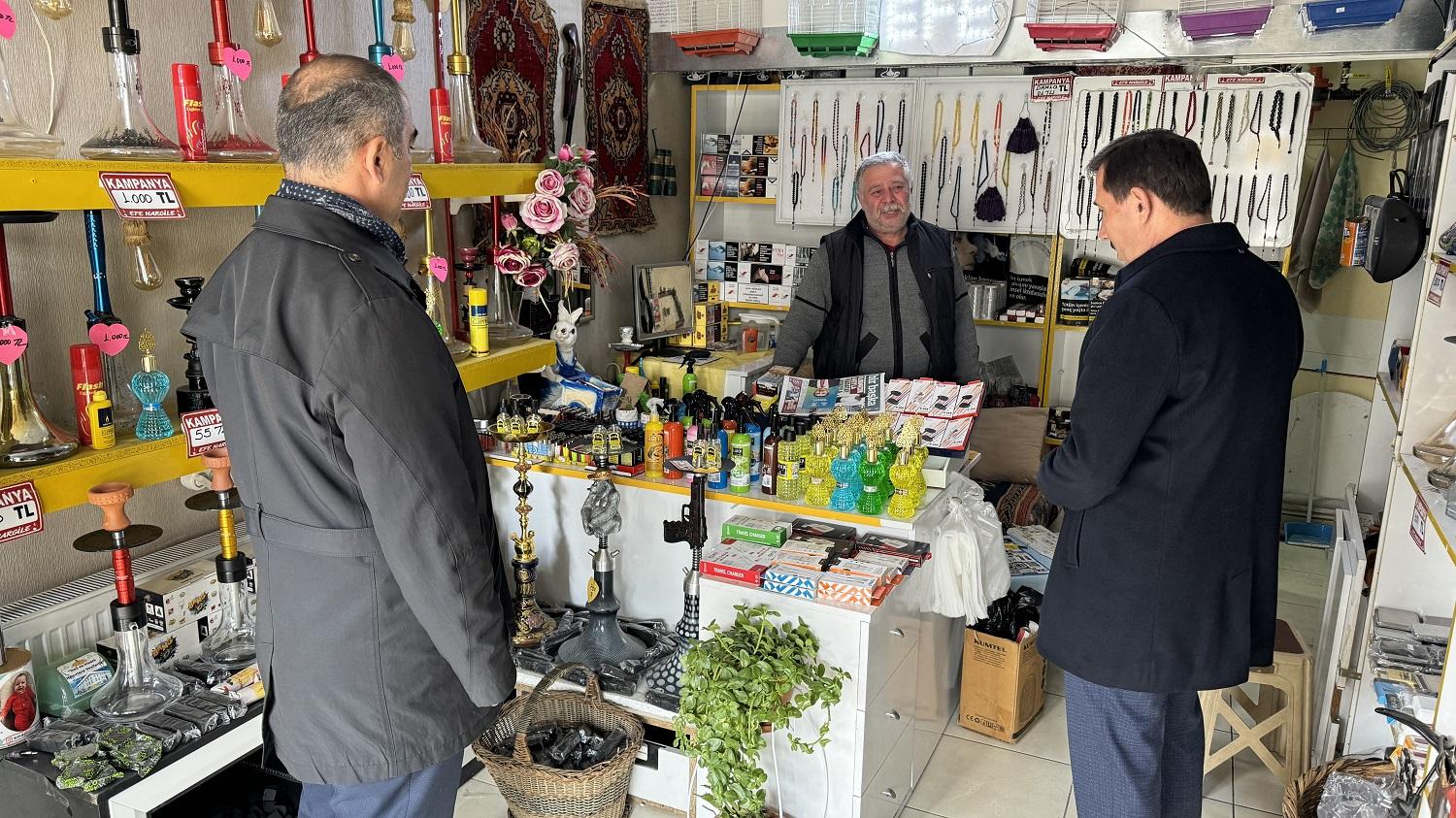 Ziyaretlerde esnafa hayırlı işler temennisinde bulunan, bölge esnafının talepleri ve mahallelerinin eksikliklerini de istişare eden Başkan Hasan Kılca ile İlçe Başkanı Mehmet Genç; söz konusu taleplerin değerlendirilip hayata geçmesi için de görüş alışverişinde bulundular.