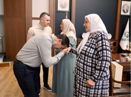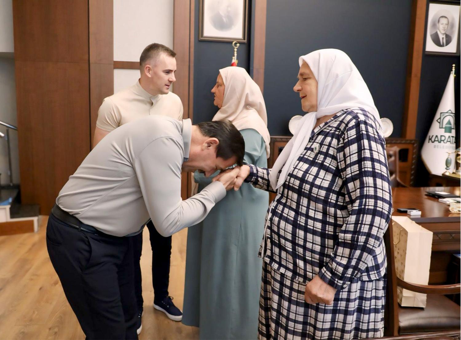 İşte evlerin teslim edildiği o Bosnalı şehit anneleri, Bosna Hersek Emmaus Vakfı Dernek Başkanı Hamzalija Okonovic, dernek yöneticileri ve beraberindeki heyetle birlikte, Karatay Belediye Başkanı Hasan Kılca’yı makamında ziyaret etti. Oldukça duygusal anların yaşandığı ziyarette Bosnalı şehit anneleri, Karatay Belediyesi’nin anlamlı desteği dolayısıyla Karatay Belediye Başkanı Hasan Kılca’ya teşekkür ettiler. Bosnalı şehit anneleri ayrıca ziyarette, Başkan Hasan Kılca’ya elleriyle yaptıkları hediyelerini de Hasan Kılca’ya takdim ettiler.