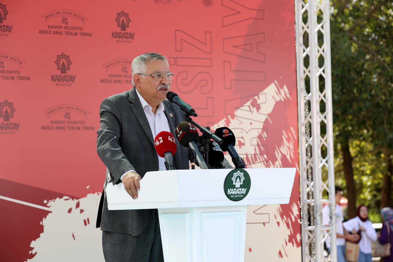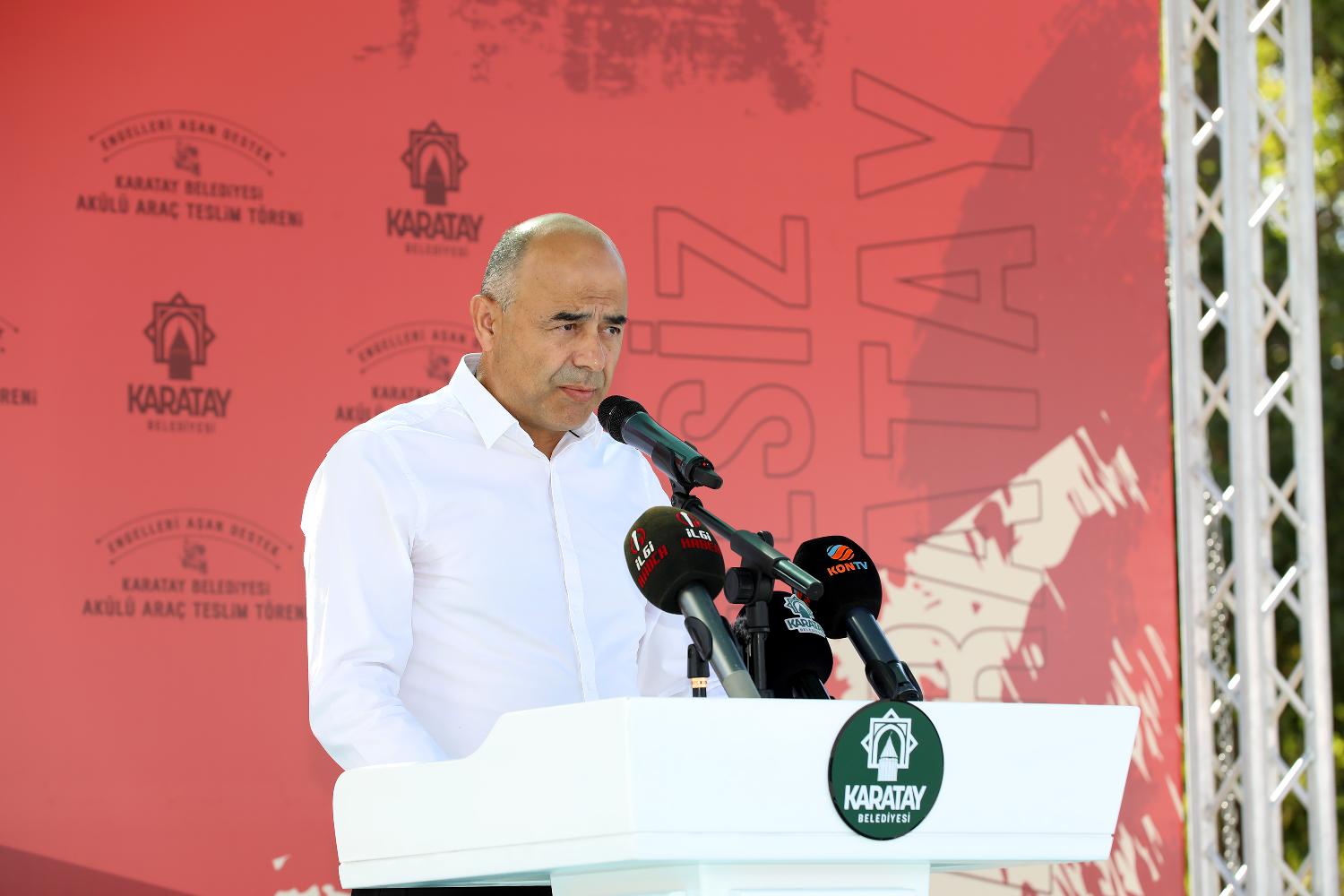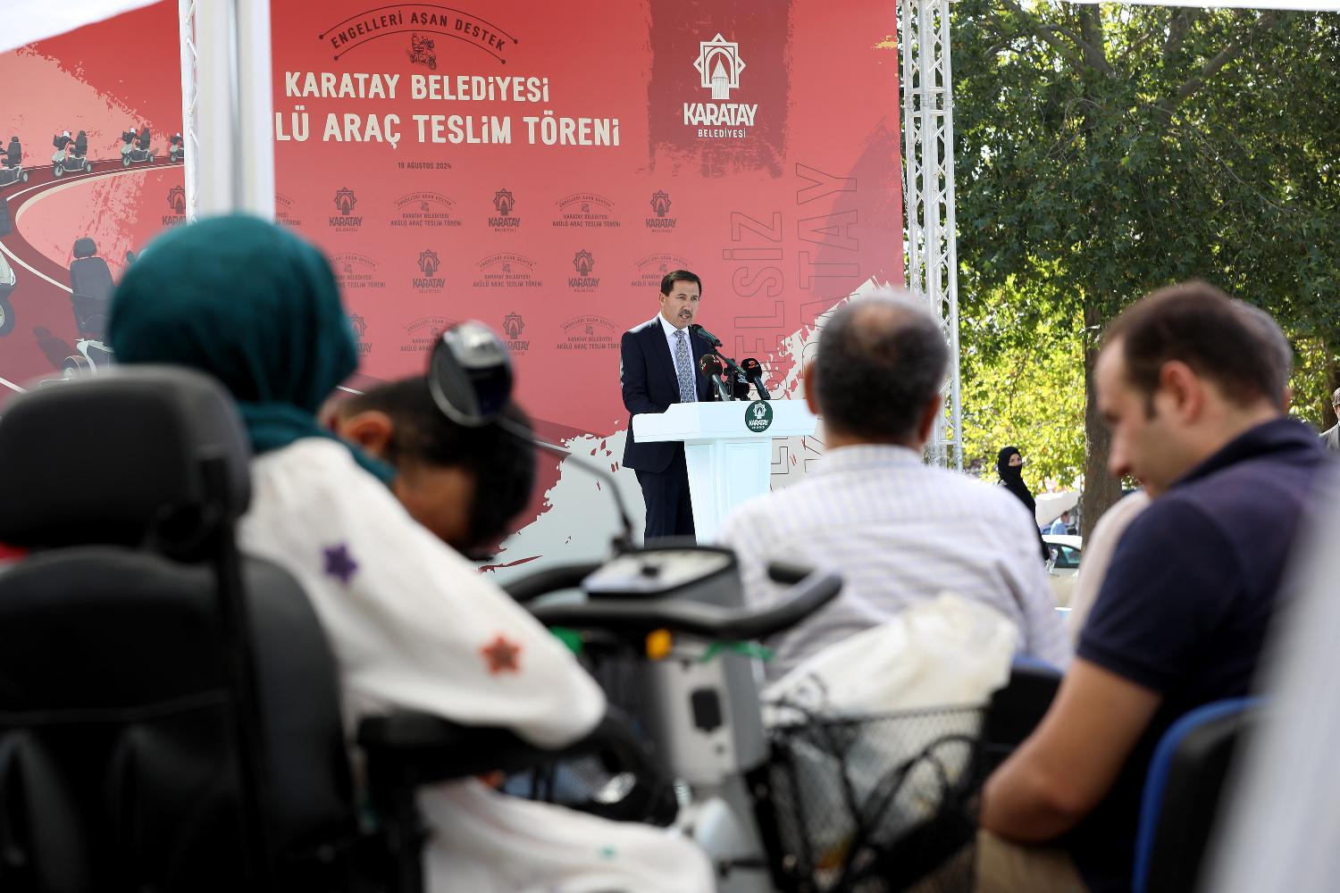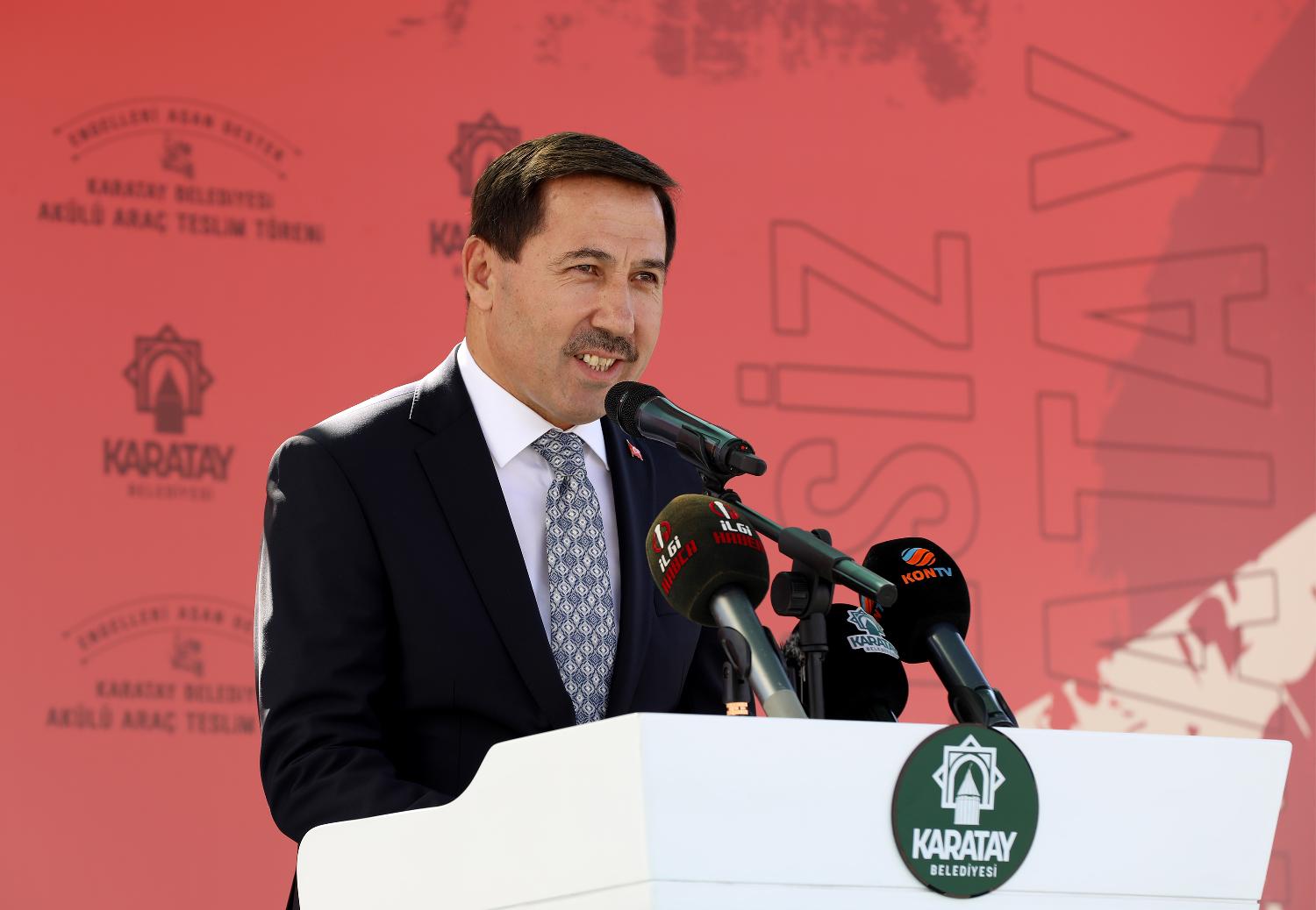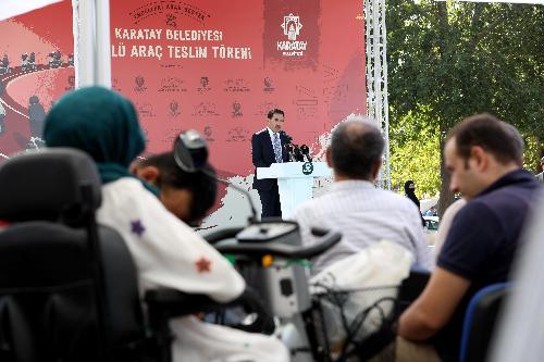 Araçların teslimi için Karatay Belediyesi hizmet binası önünde bir program düzenlendi. Programa AK Parti Karatay İlçe Başkanı Mehmet Genç, AK Parti il yönetim kurulu üyeleri, siyasi parti temsilcileri, il ve ilçe protokol mensupları ile engelli vatandaşlar katıldı.