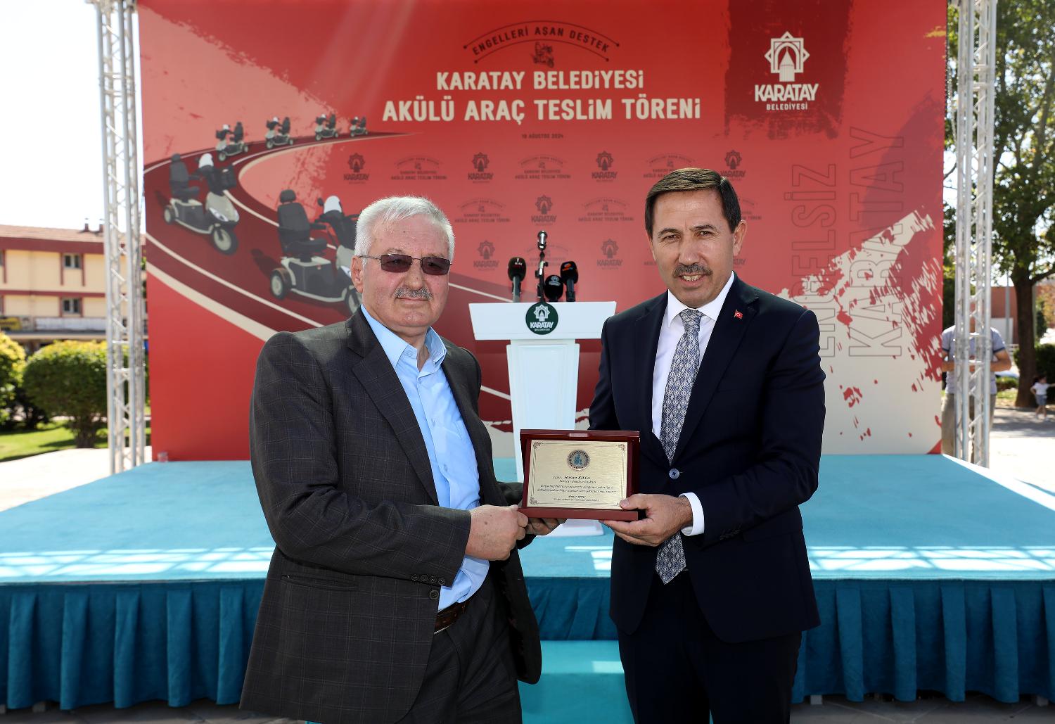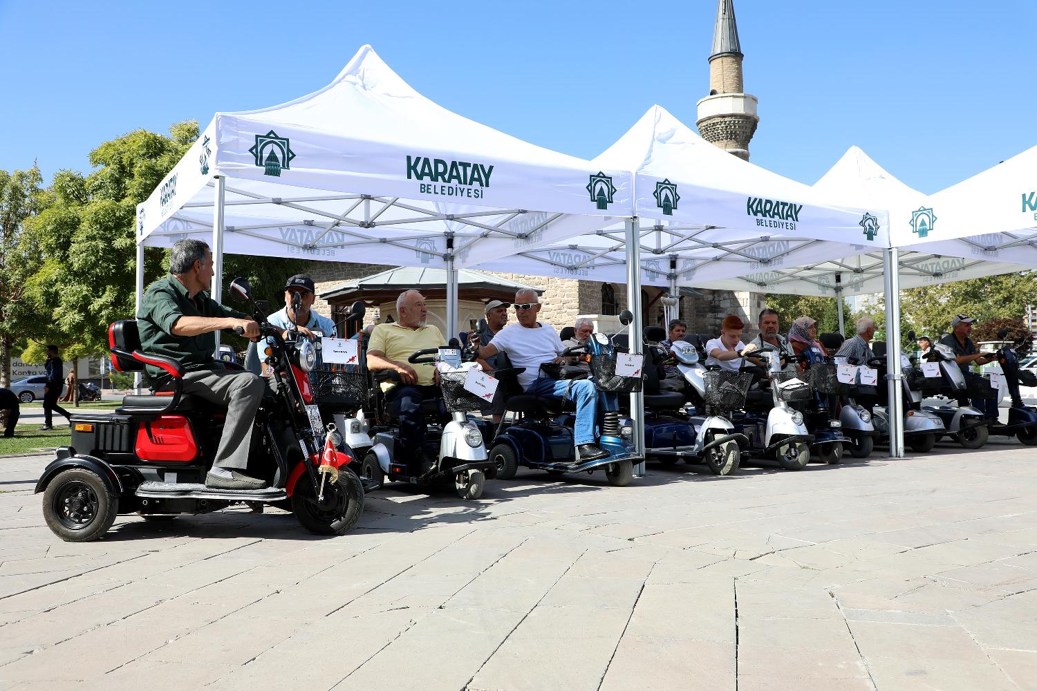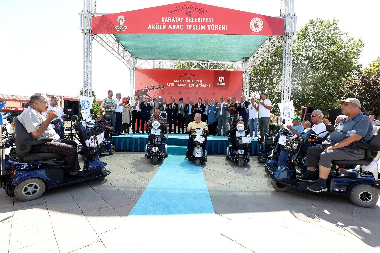Akülü araçlarını teslim alan engelli vatandaşlar, kendisini her zaman yanında gören Karatay Belediye Başkanı Hasan Kılca’ya teşekkür ettiler.